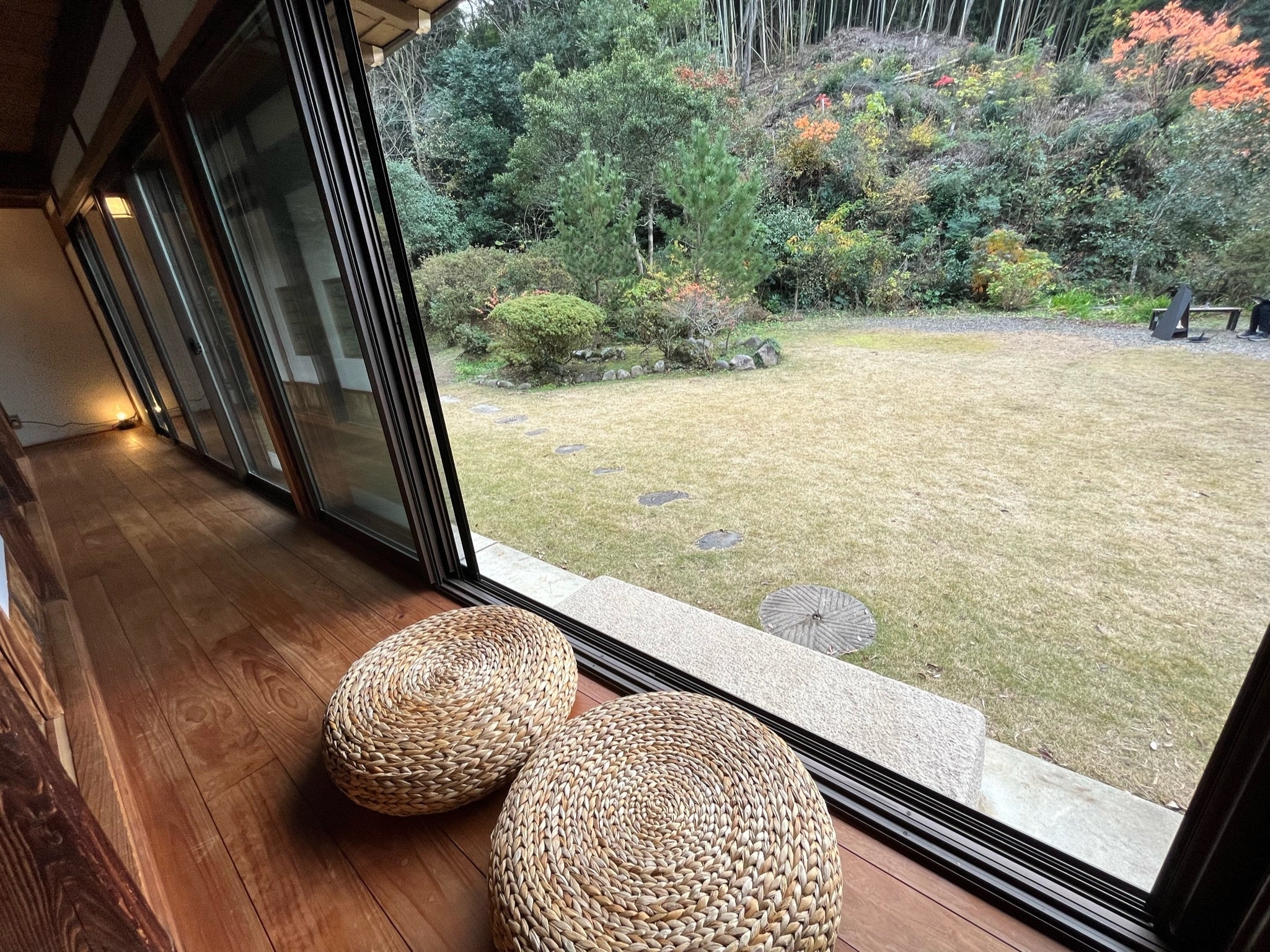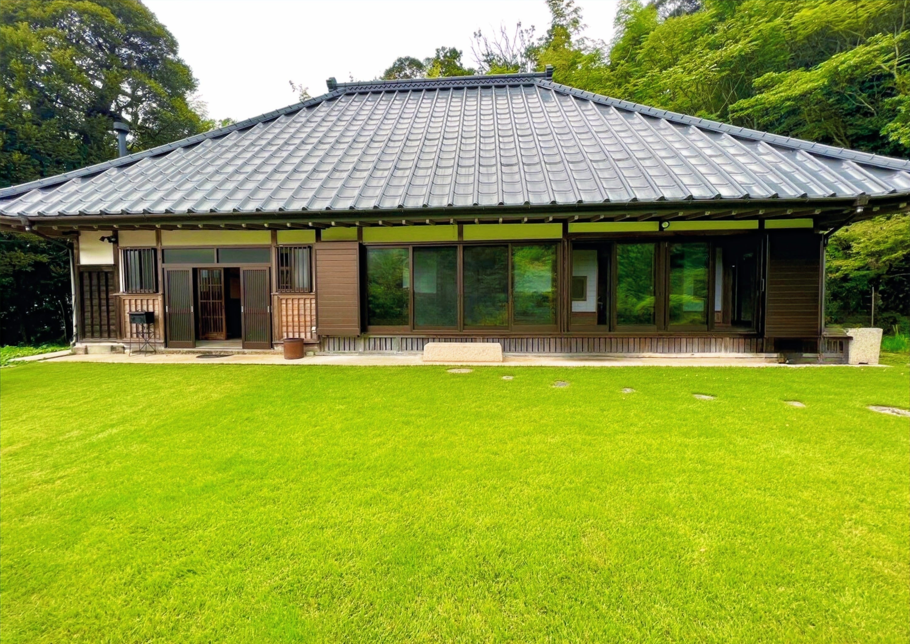 古民家の趣を残しつつ、くつろぎを満喫していただけるよう、ベッドやエアコン、Wi-Fi完備で、モダンな快適さを提供します。また、屋外には四季折々の美しい日本庭園や焚き火エリアを設け、自然の中でのんびりと過ごすことができる空間を整えました。