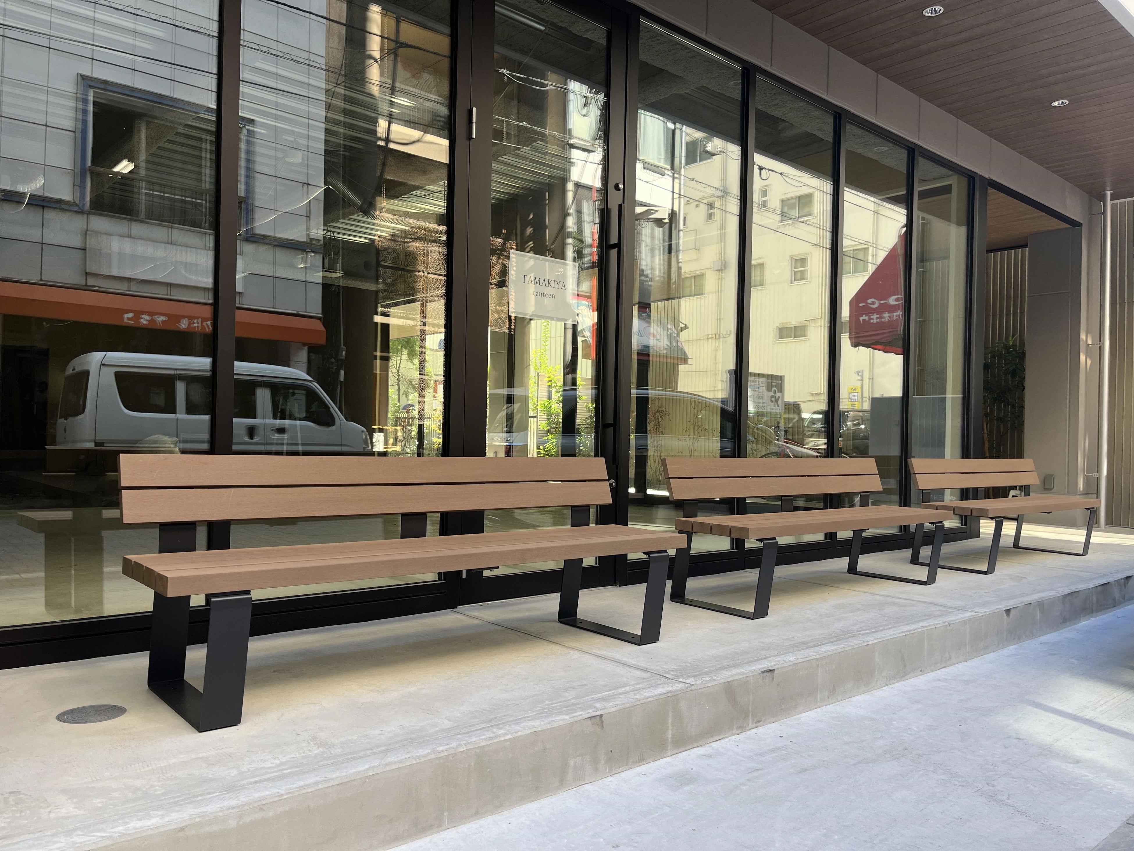 このベンチは、フクビ化学⼯業株式会社と株式会社グランドレベルのコラボレーションブランド「ファンダライン」の主軸商品となるベンチ(商品名:メランダベンチ、ルシアンベンチ)です。ベンチには、天然素材である⽊材の良さとプラスチックの耐久性といった⻑所を併せ持ったフクビ化学⼯業株式会社の再⽣⽊材「プラスッド」が使⽤されています。