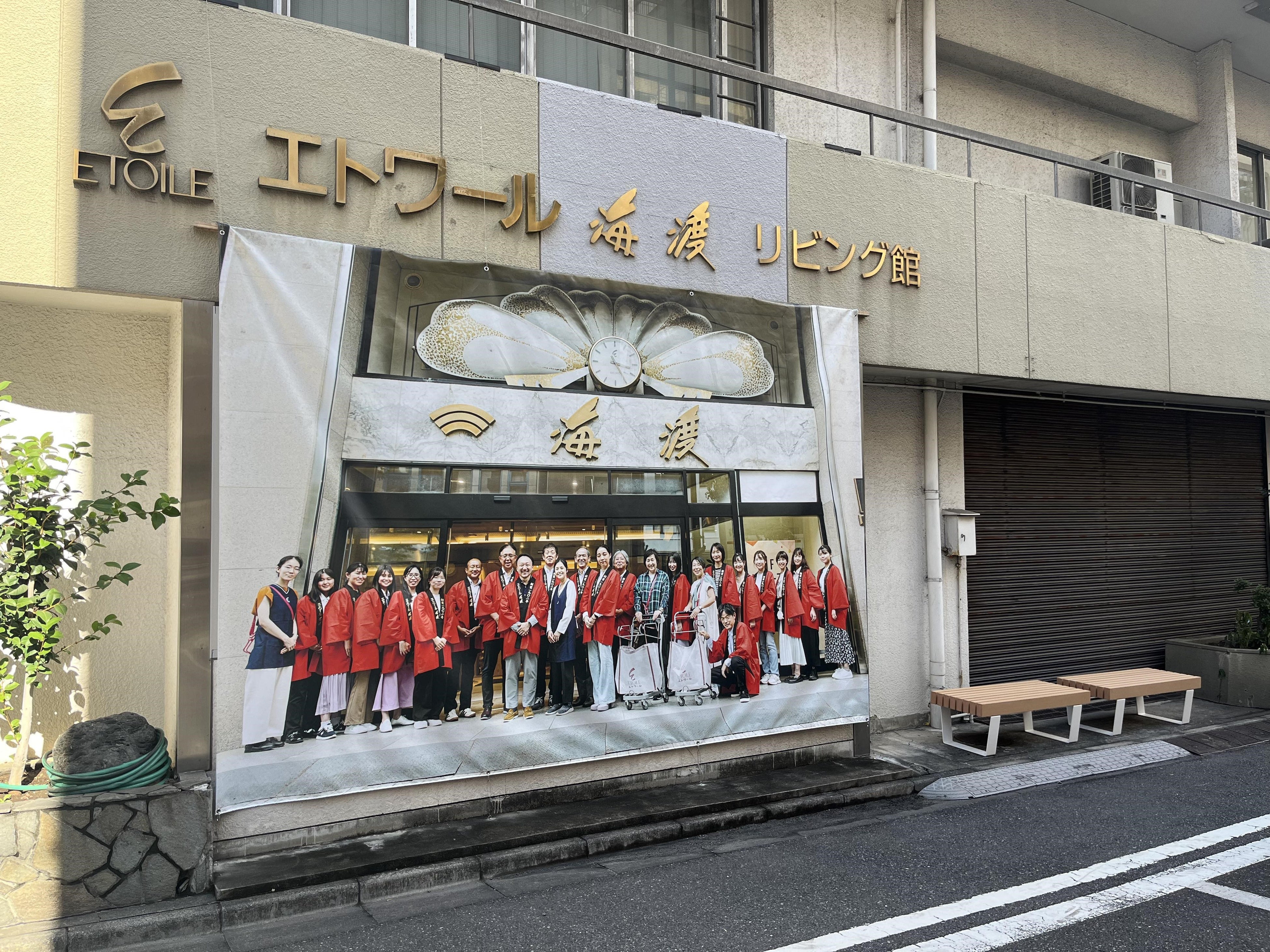 今回、エトワール海渡リビング館とエトワール海渡ショールーム館の建物内外に6 台のベンチと、NH2 Bldg.の建物前にベンチ3台を2023 年10 ⽉23 ⽇から11 ⽉5 ⽇まで設置し、デザインと⽇常が混ざり合う光景を発信します。