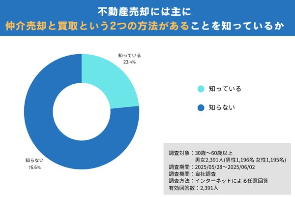 不動産売却には主に仲介売却と買取という2つの方法があることを知っている方は全体の23.4%