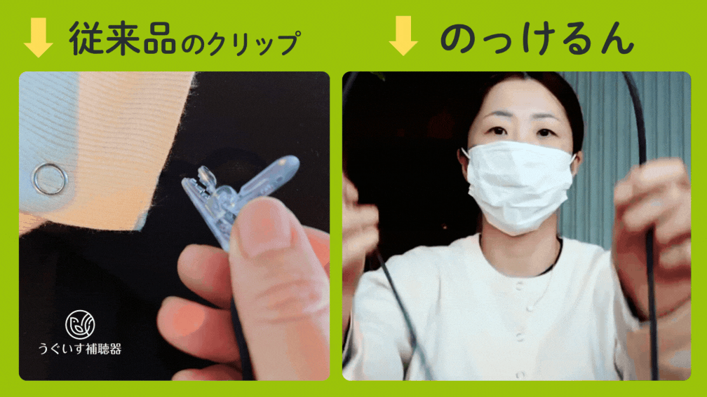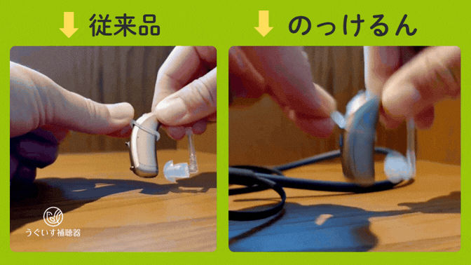 従来の補聴器落下防止品と「のっけるん」の違い