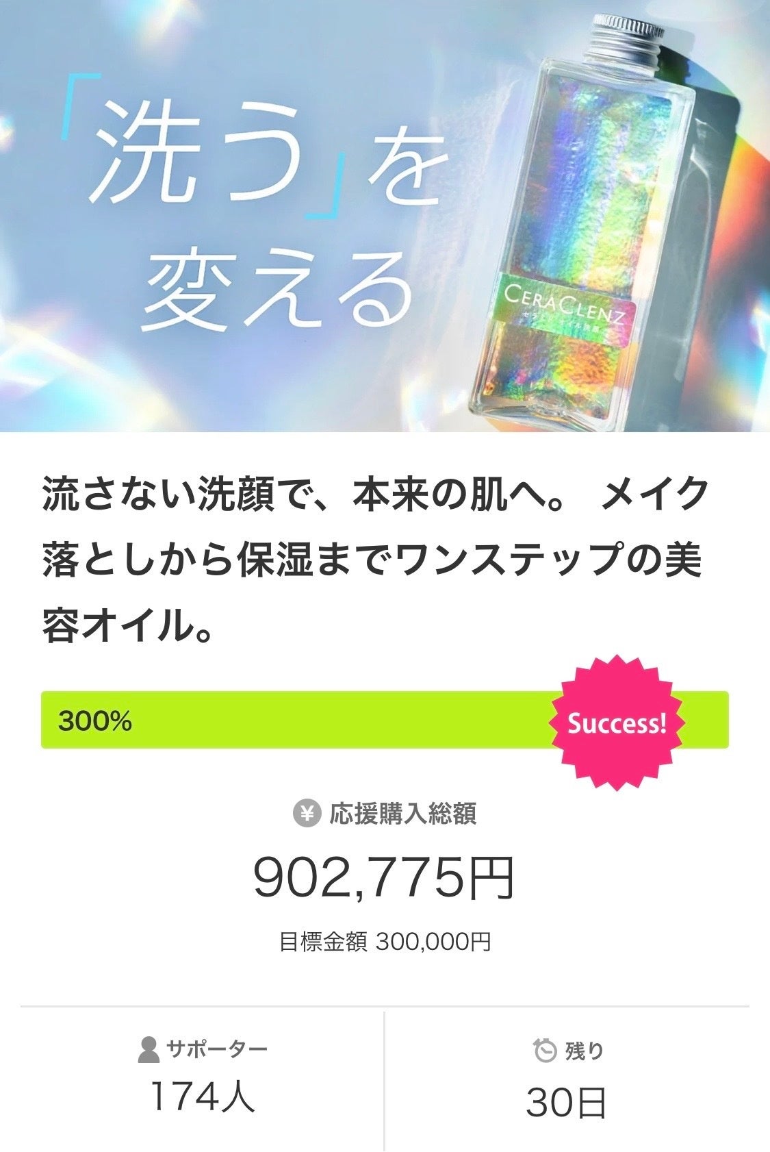 この度、自社ブランドMIULE(ミューレ)より第一弾の商品として、クレンジングから洗顔、保湿までを一度に行えるオイル「セラクレンズ」を開発、3月16日よりクラウドファンディング「Makuake(マクアケ)」"にてをスタート致しました
