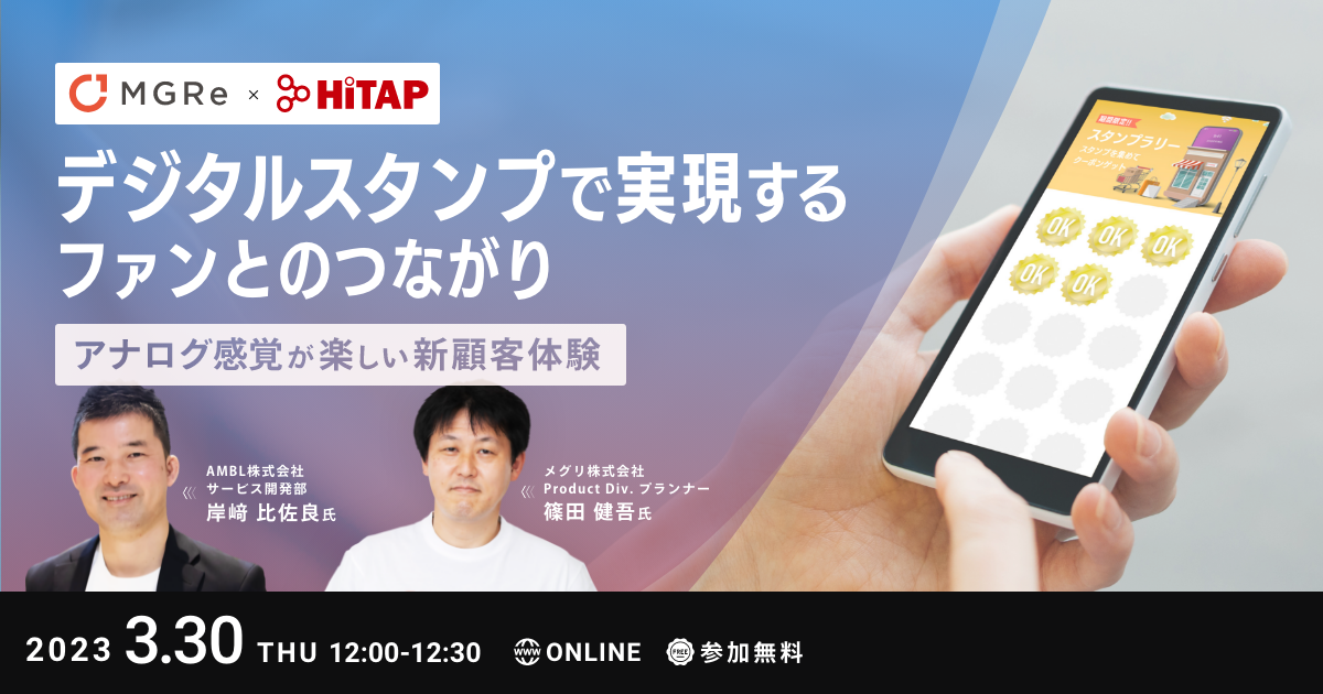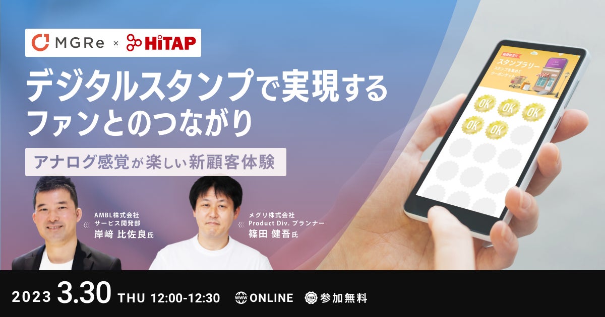 本セミナーでは、スマートフォン専用のデジタルスタンプサービス「HiTAP®」を提供するAMBL株式会社 サービス開発部 岸﨑 比佐良が、HiTAP®の活用方法や、具体的な活用事例をお話しします。