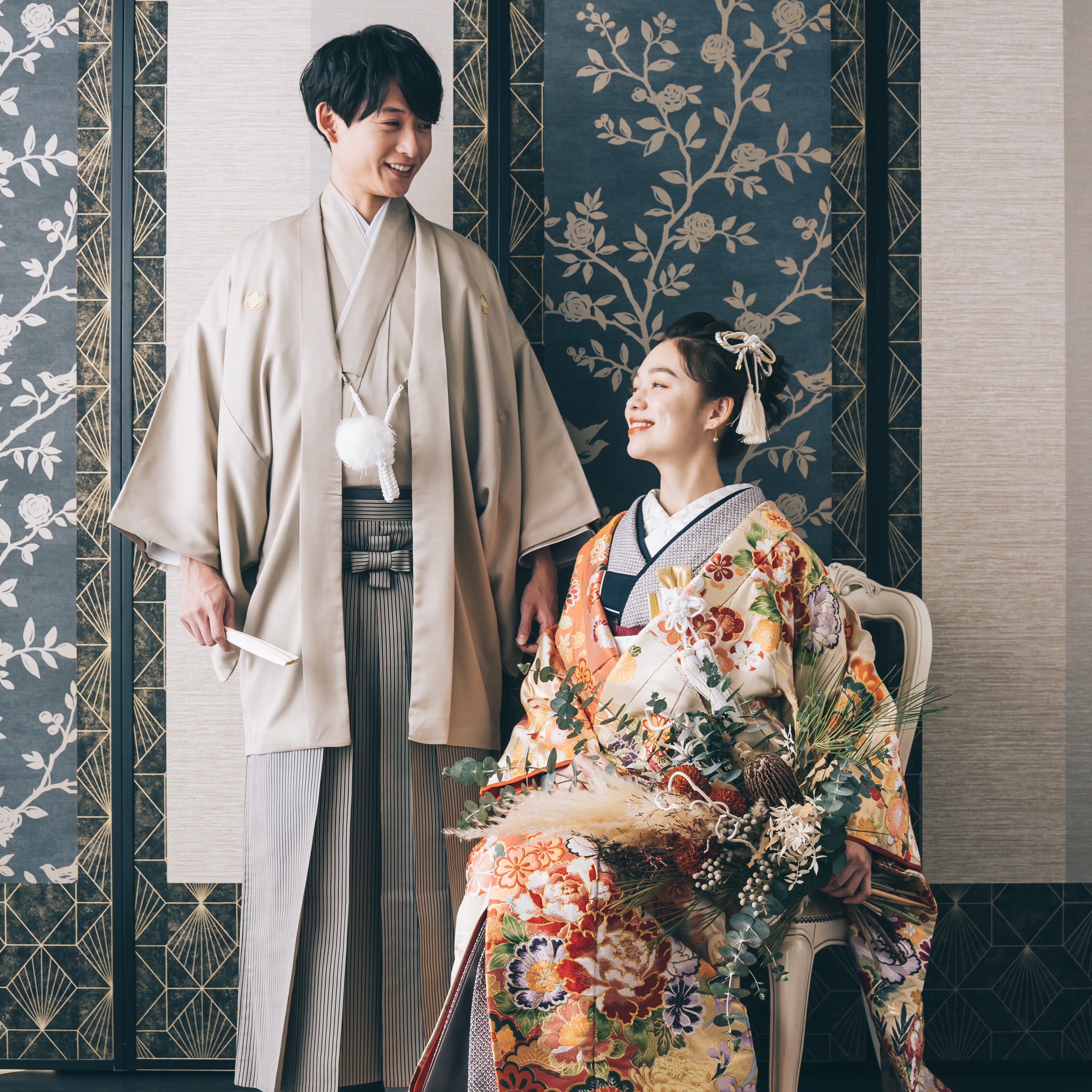- 衣裳店さながらに約50種類から選べる充実の和装。洋装も新作が入荷