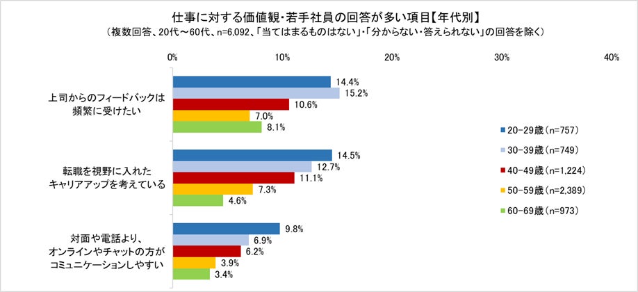 い姿勢」といった価値観、若手社員と40代~60代との「年代の壁」が浮き彫りに