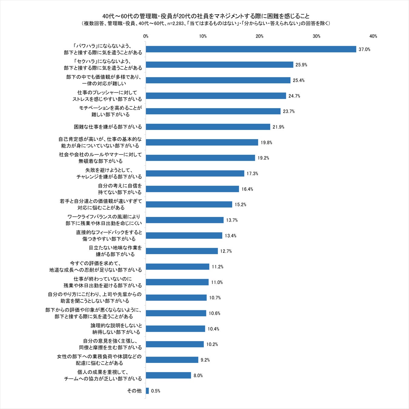 Topic2.40代~60代の管理職・役員が20代社員のマネジメントで感じる困難は「パワハラ・セ