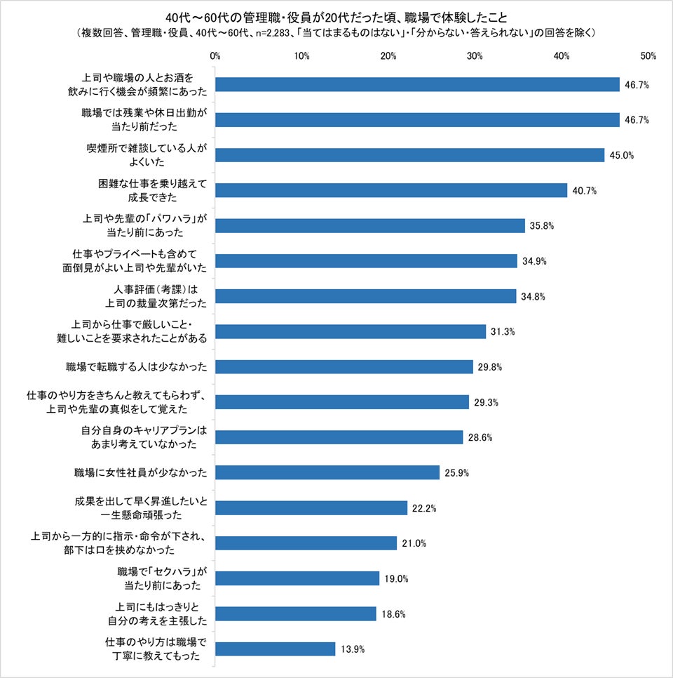 40代~60代の管理職・役員が 20代の頃に職場で体験したこと |