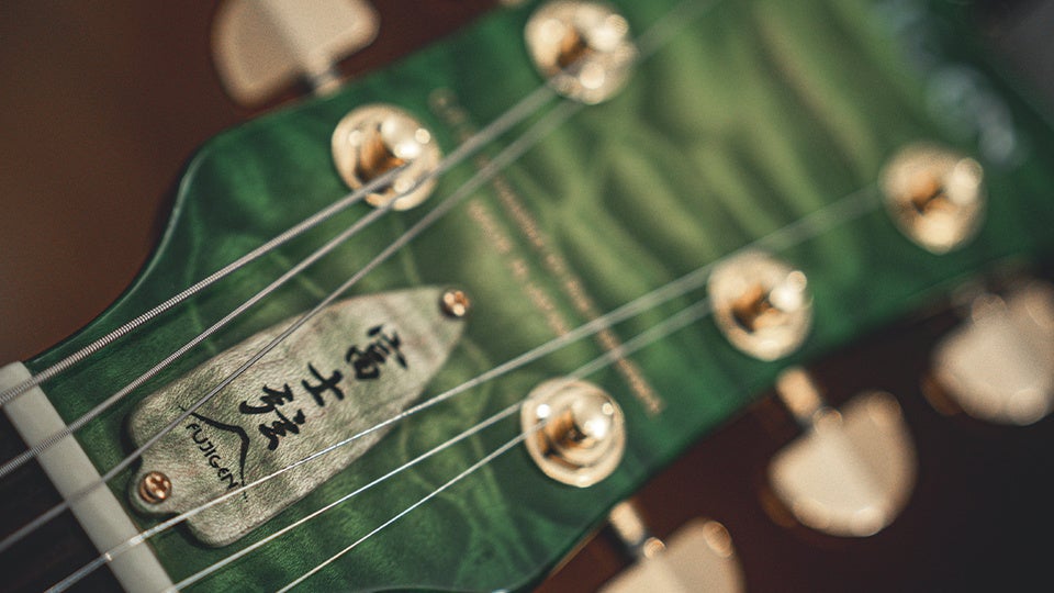 日本製のギターは、作りの精密さ、丁寧な仕上げ、音のバランスなど、品質の高さで世界的に評価されています。その中でも「FUJIGEN(フジゲン)」は、非常に評価が高い日本のギターメーカーであり、訪日外国人も日本で実際に手に入れたいと考えるブランドの一つです。そのFUJIGENが"MADE IN JAPAN"への想いも込めて「Ryokucha(緑茶) Burst」と命名した貴重なモデル。日にかざすと鮮やかな緑が強調される素晴らしい色合いです。