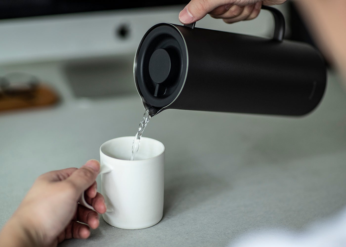 76mmの幅広口径のストレート瓶を採用。口が狭く洗いにくかった従来の卓上ポットと異なり、男性の手でも奥まですっぽり入る広口に設計しました。奥まで洗いやすいので、湿気が多くカビが発生しやすい時期でも安心です。