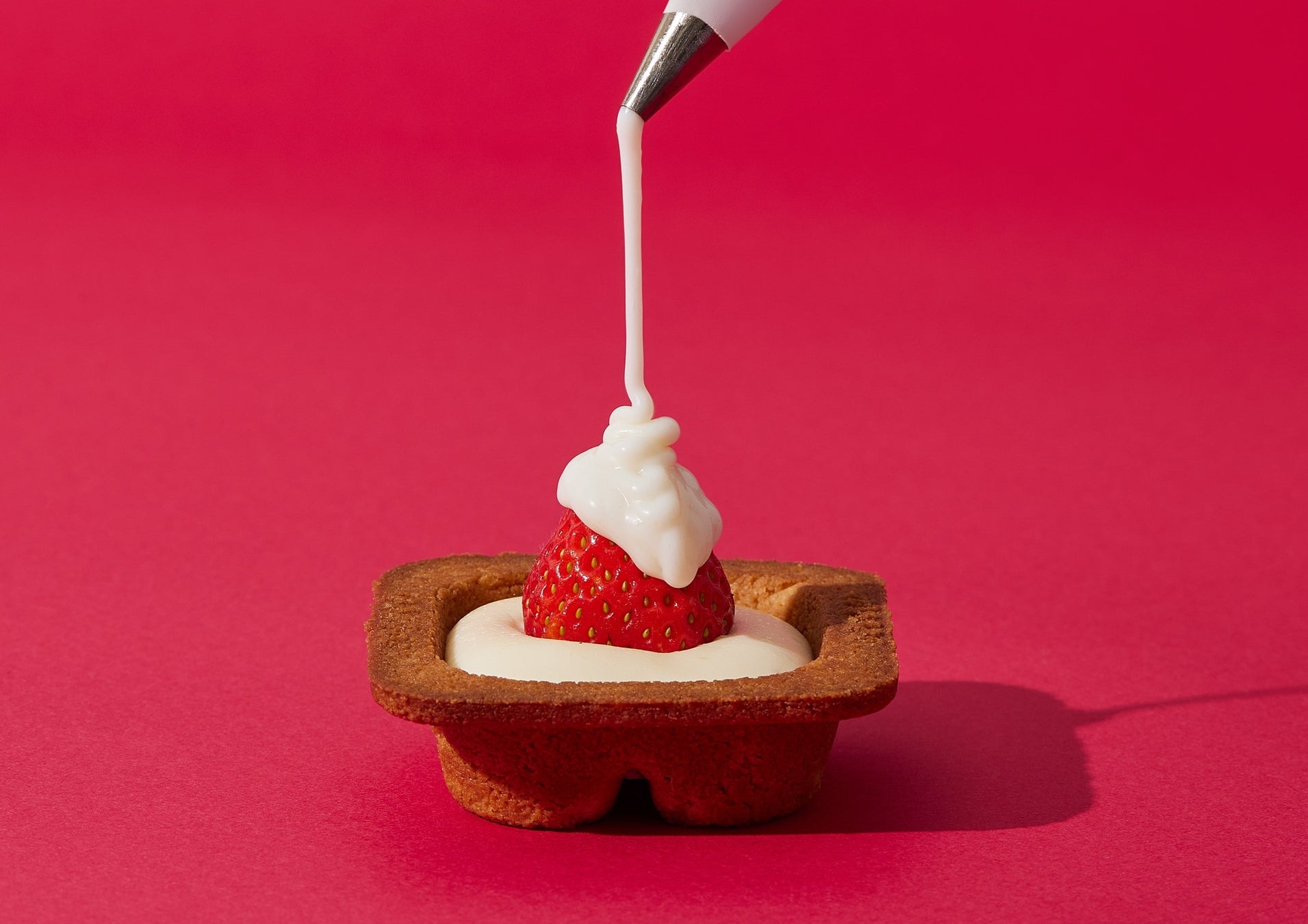 3)いちごソースのグラサージュをまとい、見た目と香りに華やかさを