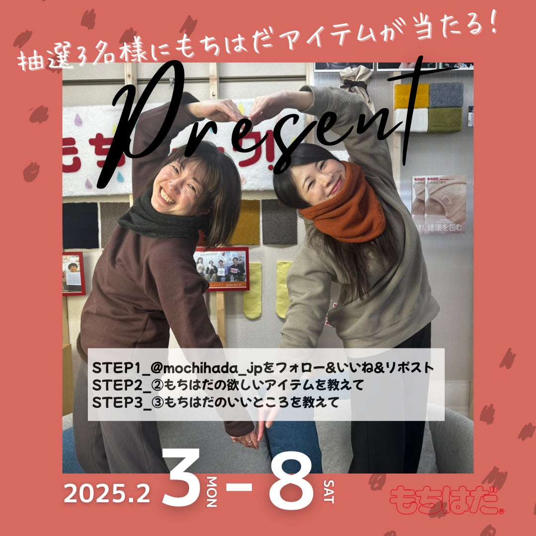寒い季節を「もちはだ®︎」で乗り越えよう!日頃の感謝を込めて、「もちはだ®︎のほしい商品を」をプレゼントいたします