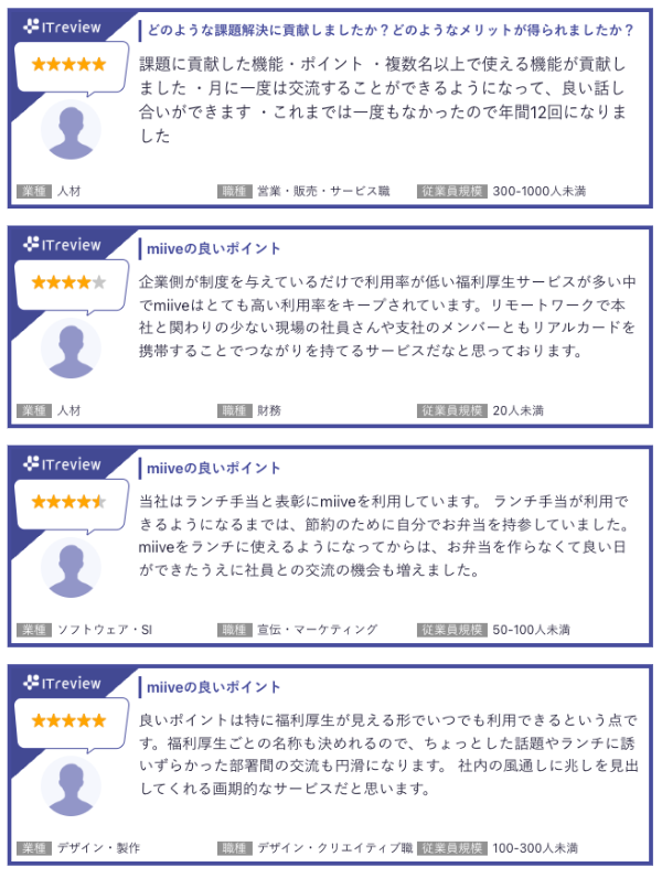 「miive」へのお客様の声 ※ITreview掲載のレビューより一部抜粋