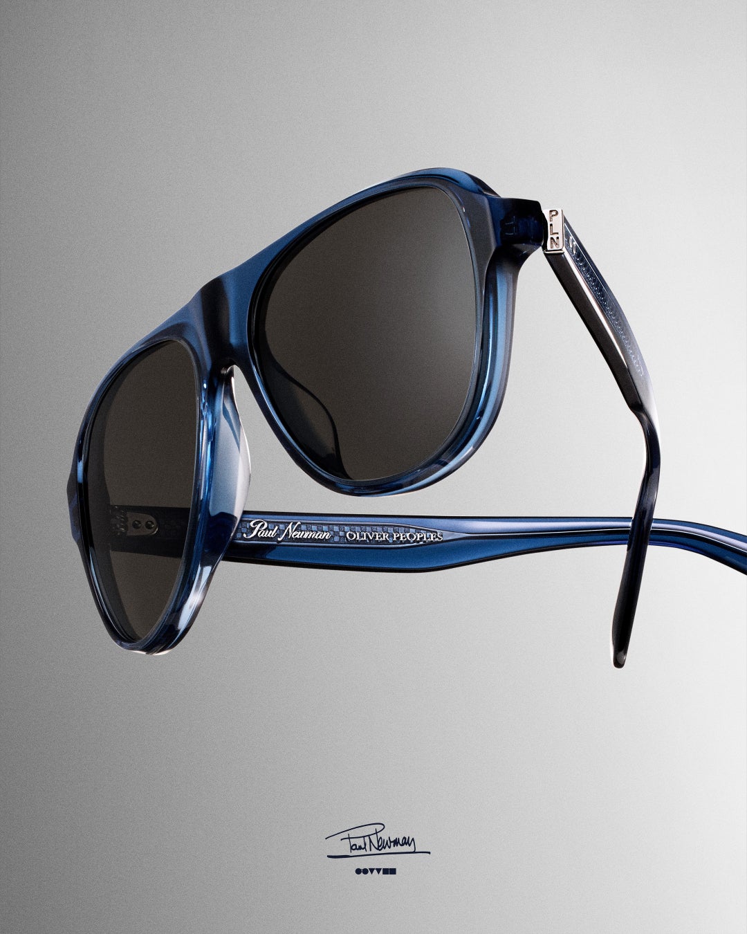 日本製のフレーム「Paul Newman」「Paul Newman Sun」は、彼のトレードマークともいえる独特のティアドロップ型レンズを採用。存在感あるアセテートのフレームにカスタムディテールと力強いカラーパレットを組み合わせています。特別仕様として、ポール・ニューマンのイニシャル「PLN」を刻印したメタルテンプルキャップ、レーシングヘルメットの意匠に着想を得たカスタム刻印入りコアワイヤー、そして彼の印象的なブルーの瞳にオマージュを捧げた深いブルーの“Newman Blue”アセテートを採用。さらに、オプティカルモデルにはブラックのカラーバリエーションに淡いブルーのレンズを搭載し、彼のエフォートレスなクラシックスタイルへのさらなる敬意を表しています。これらの特別なディテールが、彼の人生のさまざまな側面を称え、新たなオリバーピープルズの象徴として結実しています。