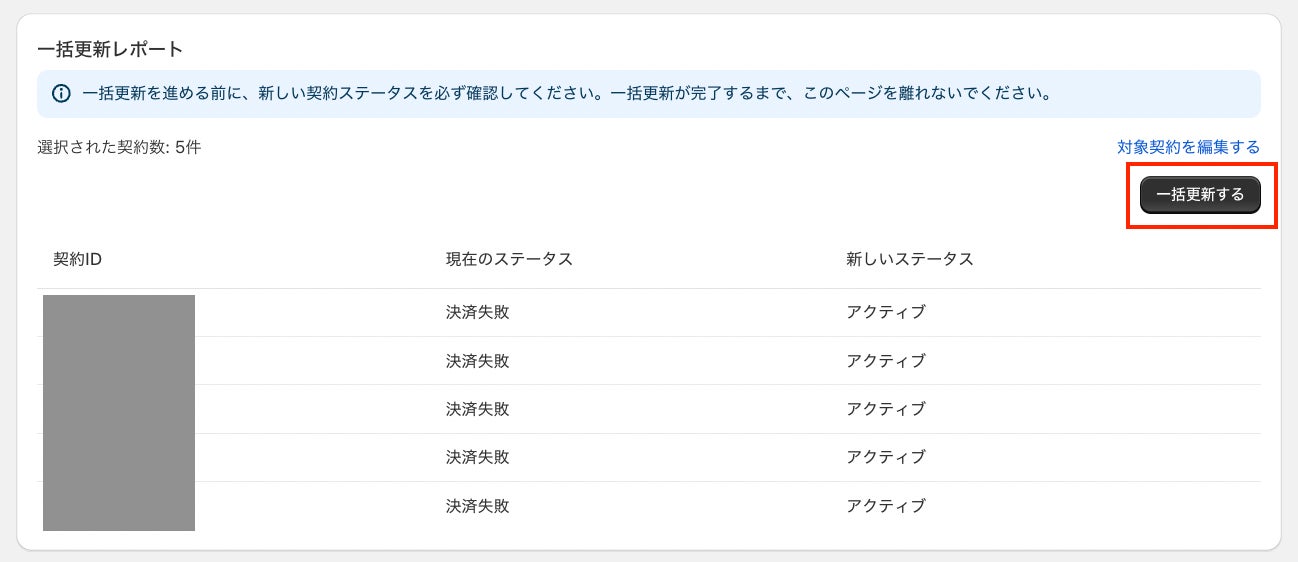 今回のアップデートにより、契約の一括更新機能が追加されました。