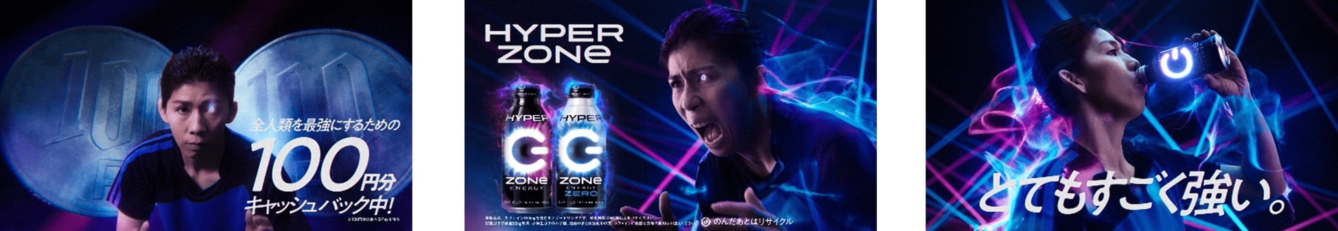 蓋つきボトル缶エナジードリンク「HYPER ZONe」のパッケージデザインをリニューアルします。圧倒的覚醒テイストで「ZONe」史上最高のうまさが直観的にわかる、「超発光ロゴ」を採用しています。