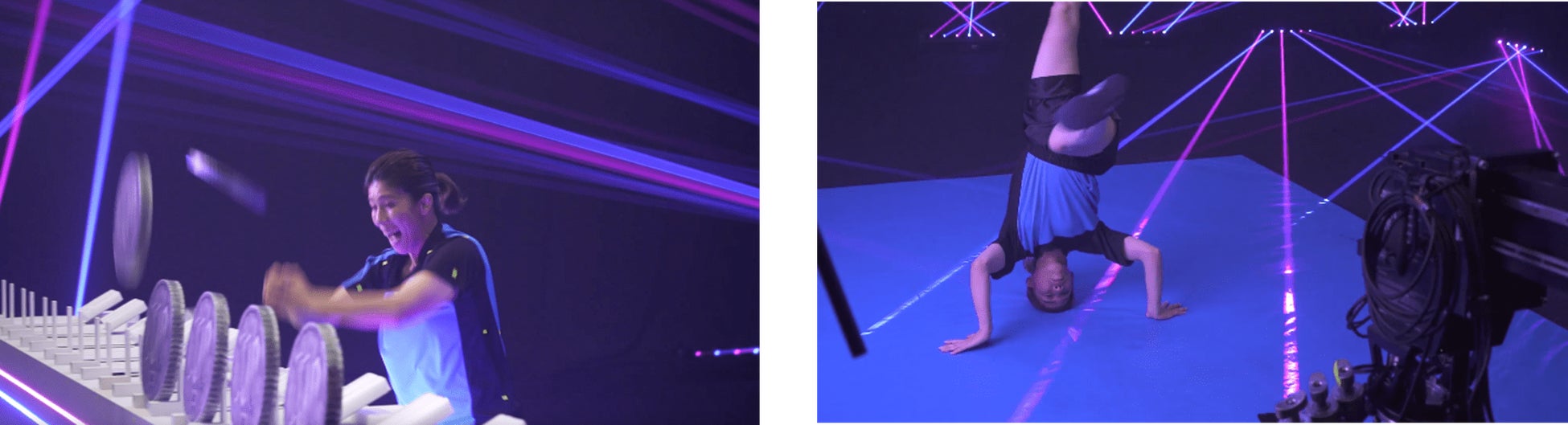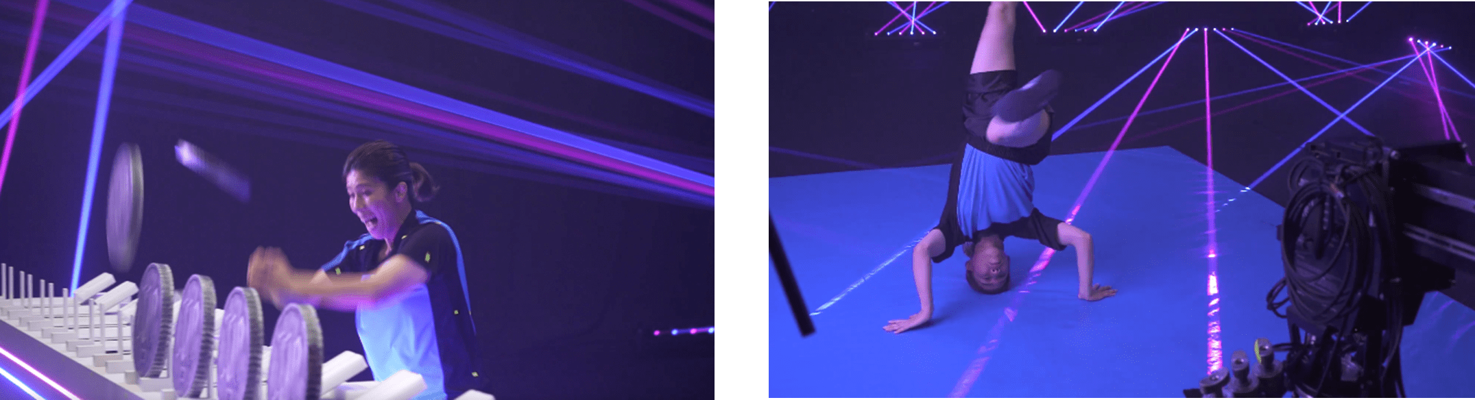撮影は、荘厳な世界観でレーザービームが降り注ぐ中、吉田さんが筋骨隆々な部下に囲まれ堂々と君臨するシーンからスタート。コインを次々と吹き飛ばしていくシーンでは、吉田さんの俊敏な動きにカメラが付いていけず「付いて来てくださいよ!」と撮影スタッフまでも最強にさせる言葉が投げかけられました。またコインが1つだけうまく飛ばず、「え!なんで!」と声を上げる場面もありましたが、現役選手を引退したとは思えないほどの身のこなしで霊長類最強の撮影スタイルを感じさせる姿が収められています。一方でゆっくりと動くシーンでは、なれない動きにとても苦戦した様子で、意外な一面が垣間見えた瞬間もありました。そのほか、SNSで話題になったレスリングのトレーニングを生かした三点倒立をする姿など、吉田さんの気さくで優しい姿と最強でかっこいい姿にご注目ください。
