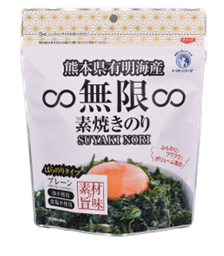 今回新たに発売する「熊本県有明海産∞無限∞やみつきのり(大容量)」は、∞無限∞のりシリーズの中で最も人気の高い「∞無限∞やみつきのり」(うま塩味)の、2倍量サイズの商品です。「∞無限∞やみつきのり」(うま塩味)の売行き好調を背景に、「1パックよりももっと量が多く入ったサイズが欲しい」というお客様からのお声を受け、発売に至りました。