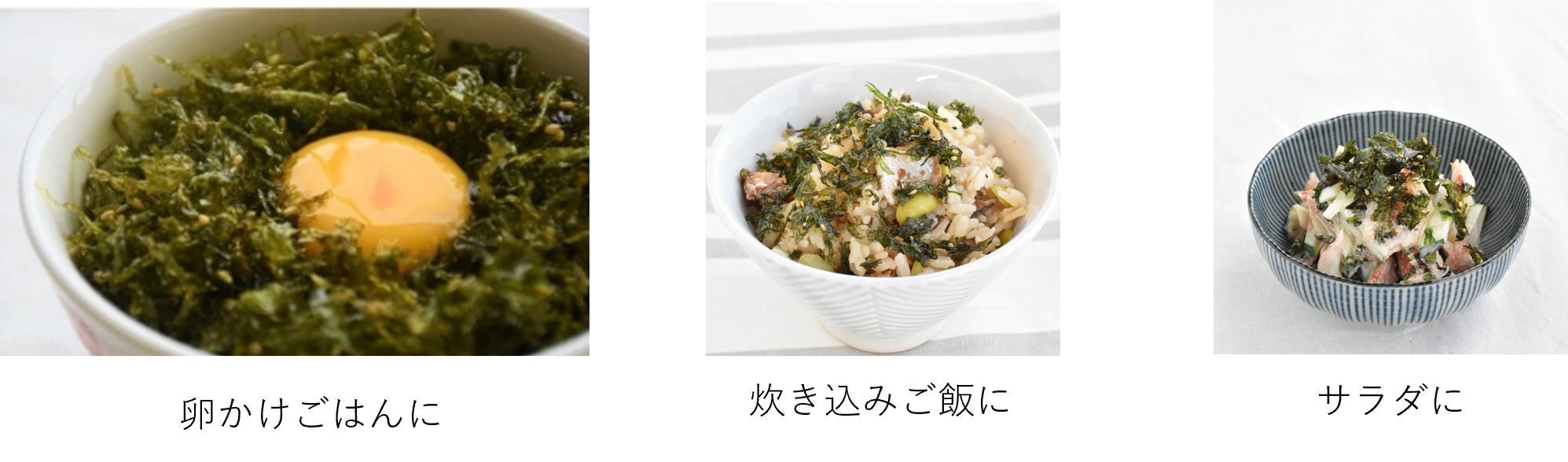ことができます。ご飯もの、汁もの、サラダなど、お好みの料理にさっとかけれて汎用性抜群です。