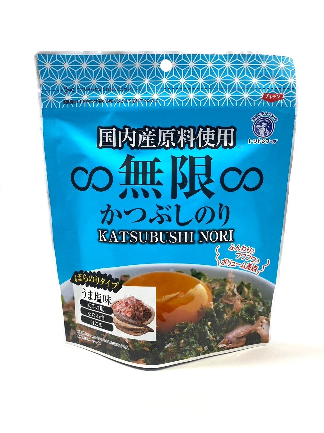 「∞無限∞のりシリーズ」は、トリトンフーヅが展開する、無限に食べられるほど飽きない美味しさのばらのりシリーズです。味付けタイプの「∞無限∞やみつきのり」と、プレーンタイプの「∞無限∞素焼きのり」、わさび風味の「∞無限∞わさびのり」、そしてうま塩味にかつお節のフレーバーを効かせた、今年9月に発売した「∞無限∞かつぶしのり」は、それぞれが販売予想を上回る人気となり、シリーズ累計で160万袋を突破しております。