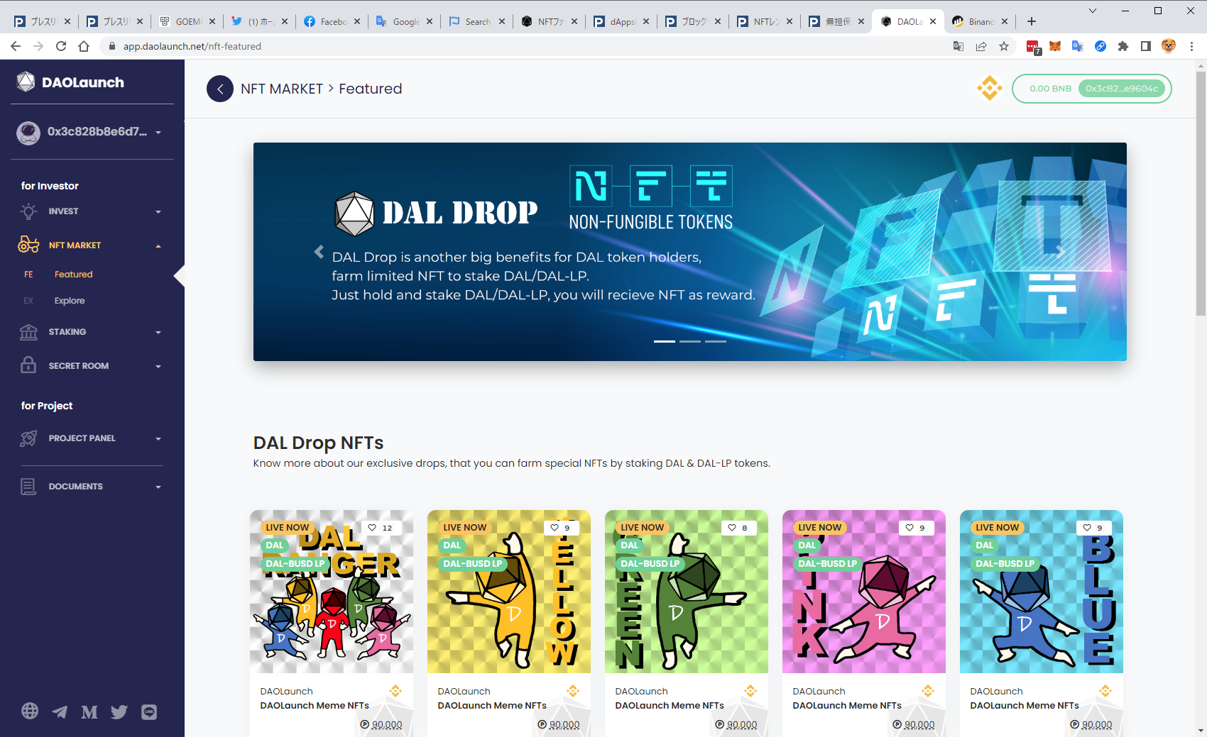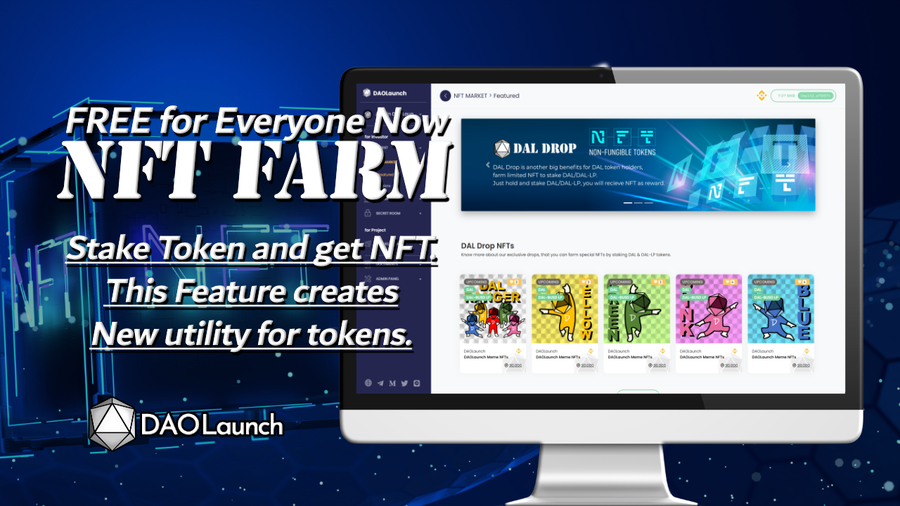 現在、$DALトークンをステーキングする事で、DAOLaunch Meme NFTsを受取れるキャンペーンを実施中です。このDAL FARMには、今後様々なプロジェクトのNFTが追加される予定ですので、ご期待下さい。