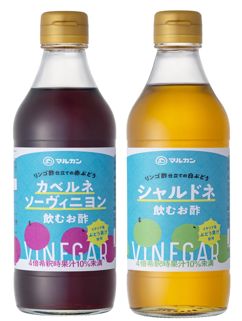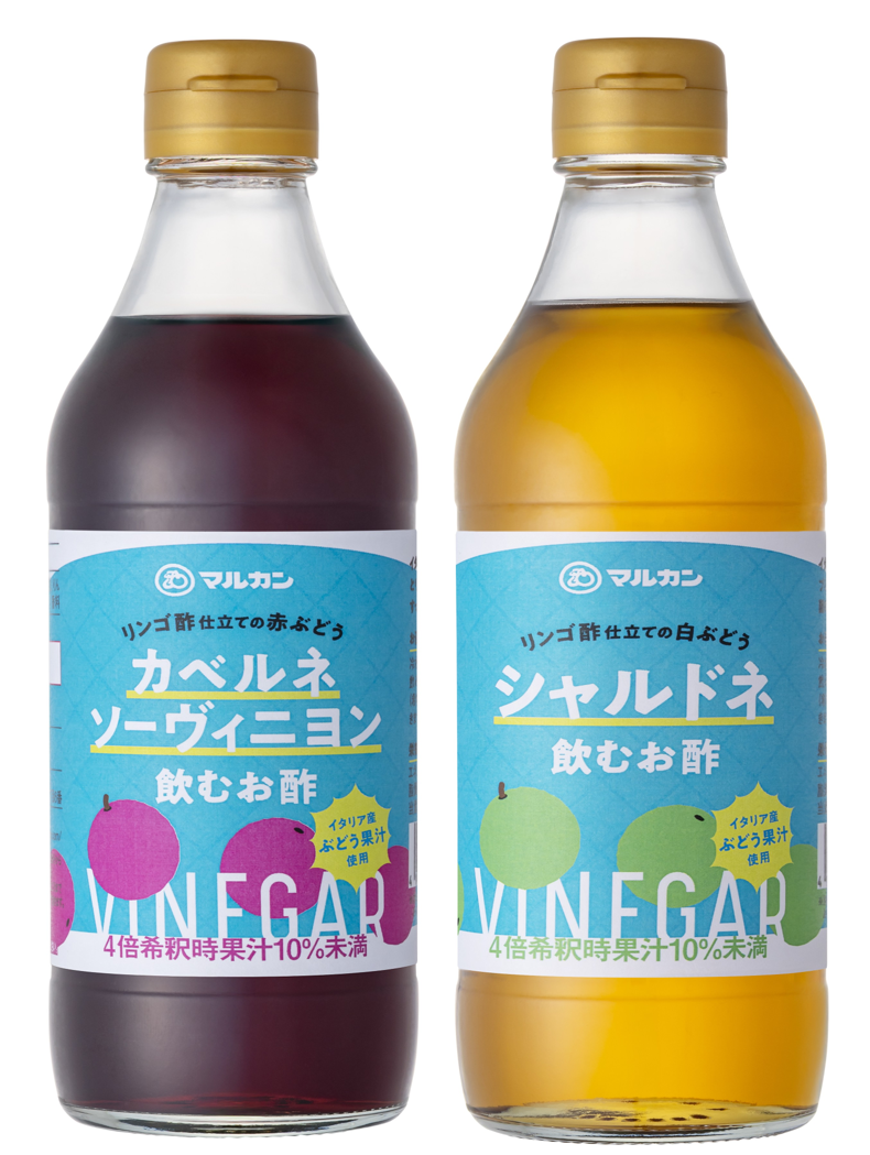 「リンゴ酢仕立ての白ぶどう シャルドネ」と「リンゴ酢仕立ての赤ぶどう カベルネソーヴィニヨン」マルカン酢の新商品 2026年3月1日(日)より発売