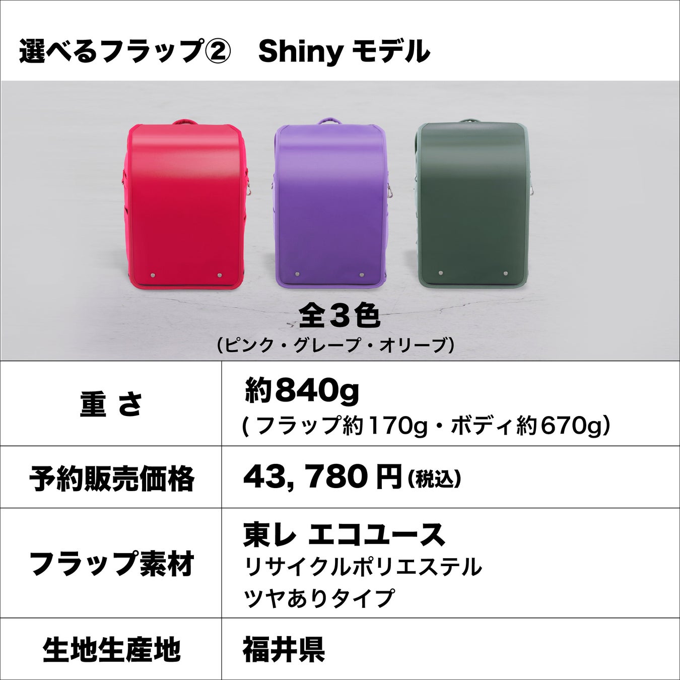 ■Shiny<シャイニー>モデル 全3色 43,780円(税込・送料別)