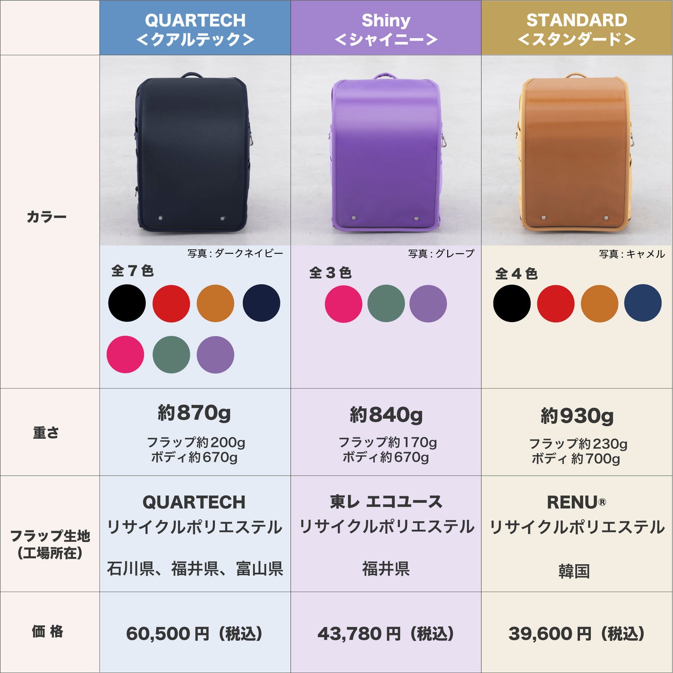 2024年モデル発表!全9カラー16タイプ。石川県で誕生した最先端リサイクル生地QUARTECH<クアルテック>をNuLAND®<ニューランド>が世界初の製品化。「さらに軽く!革新のランドセルへ」