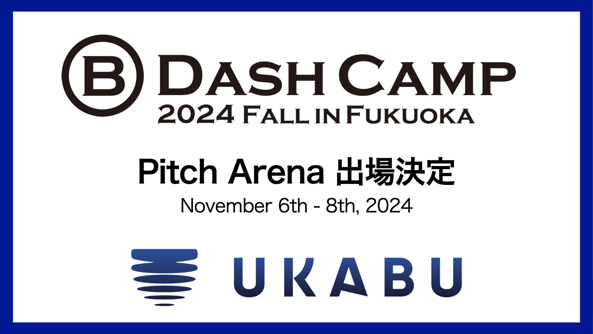 2024年11月6日〜8日に開催される「B Dash Camp 2024 Fall in Fukuoka」のPitch Arenaに株式会社UKABUが出場することが決定しました。