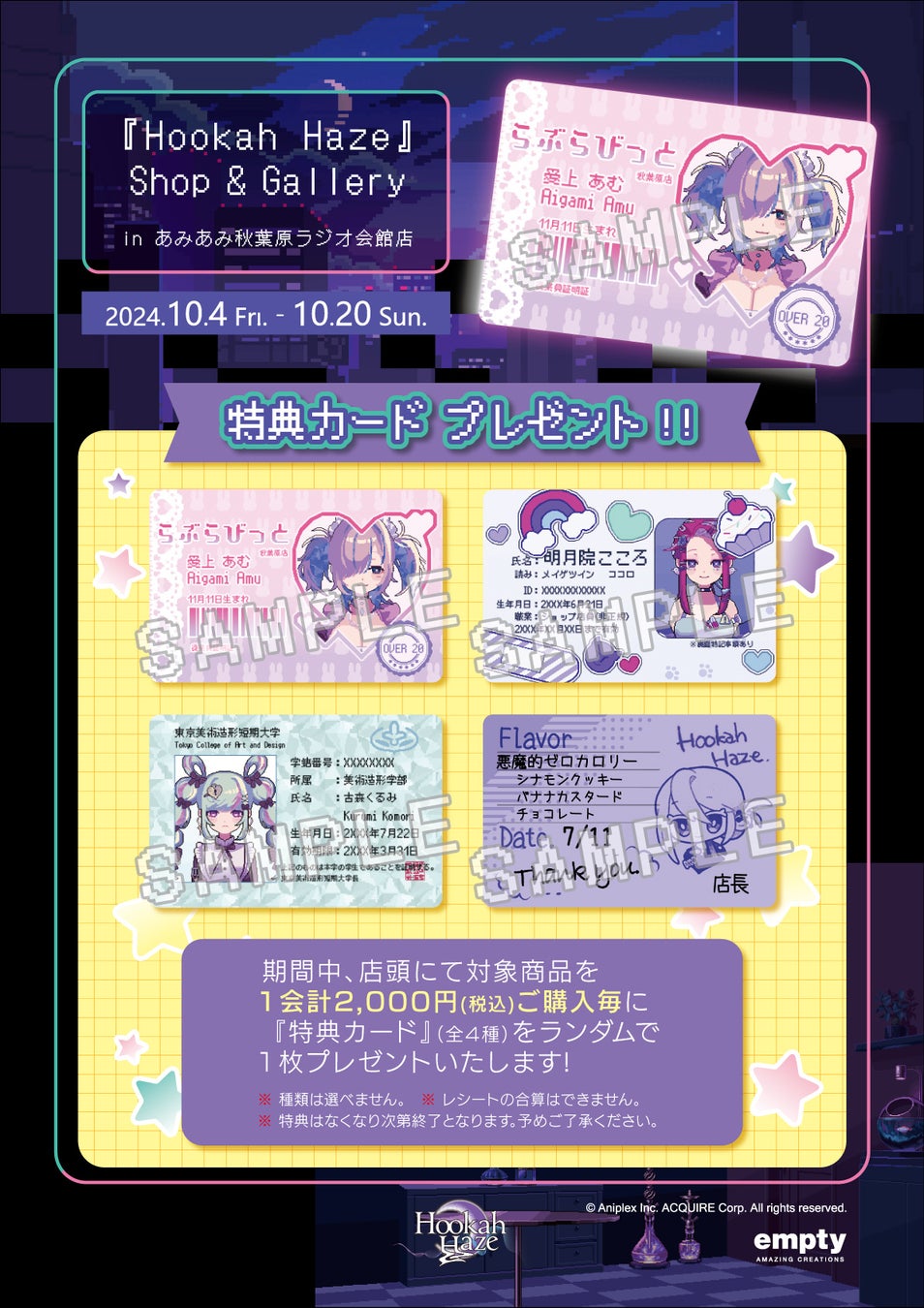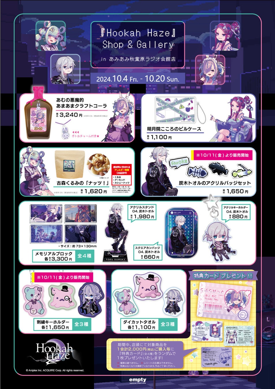 アクワイア企画・開発、アニプレックス販売のゲーム『Hookah Haze』の催事が、 2024年10月4日~10月20日の期間、「あみあみ秋葉原ラジオ会館店」にて開催。貴重な設定資料の展示も実施。