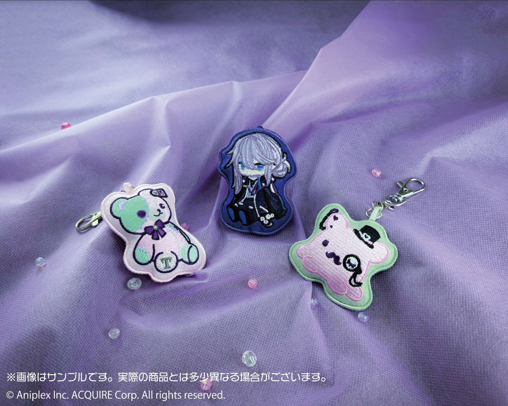 作中に登場するぬいぐるみを、刺繍を贅沢に使用したキーホルダーに仕上げました。