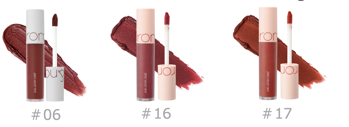 ・「ロムアンド ゼロベルベットティント」 全3色 各5.5g 各¥1,320(税込)