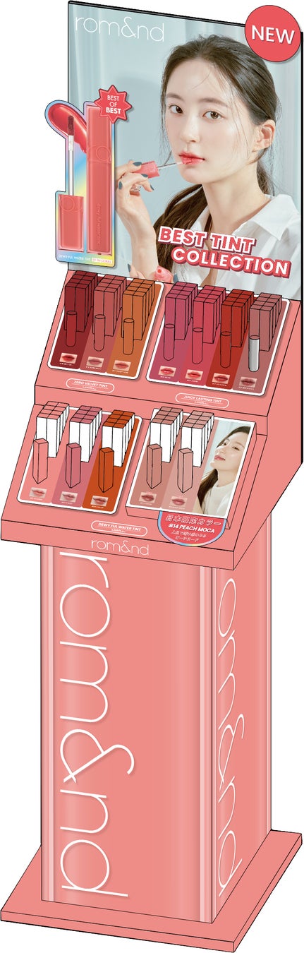 デュイフルウォーターティントの新色発売と合わせて、新色2種を含むロムアンドの人気リップ全12色をオリジナルディスプレイにて販売する、「ロムアンド ベストティントコレクション」を10月3日(月)より展開します。