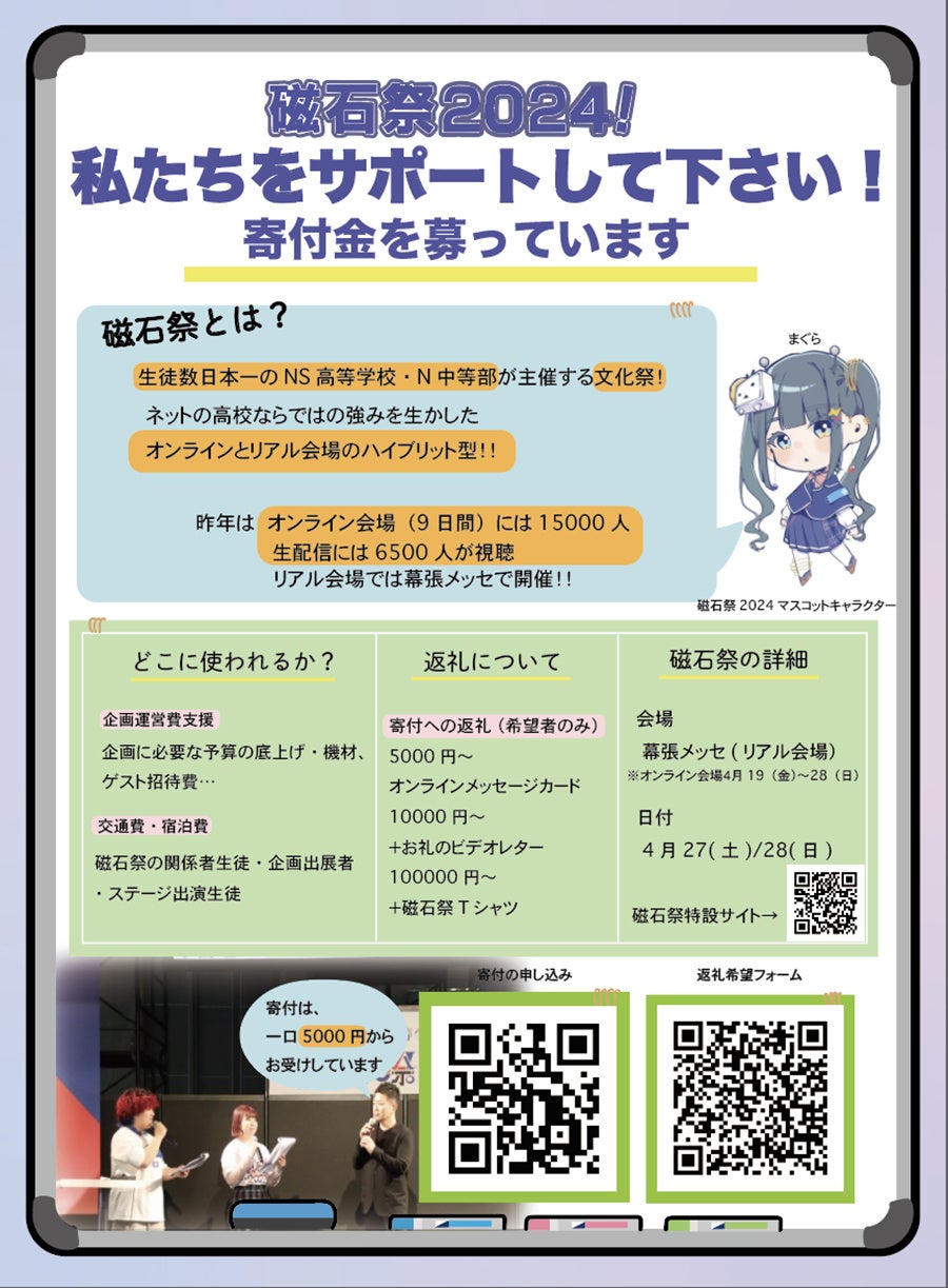 日本一の文化祭「磁石祭」をN/S高がニコニコ超会議内で開催 1,000万円獲得目指し、生徒会が協賛営業にチャレンジ~「全生徒27,000名の可能性を広げたい」営業部長の生徒が発案~