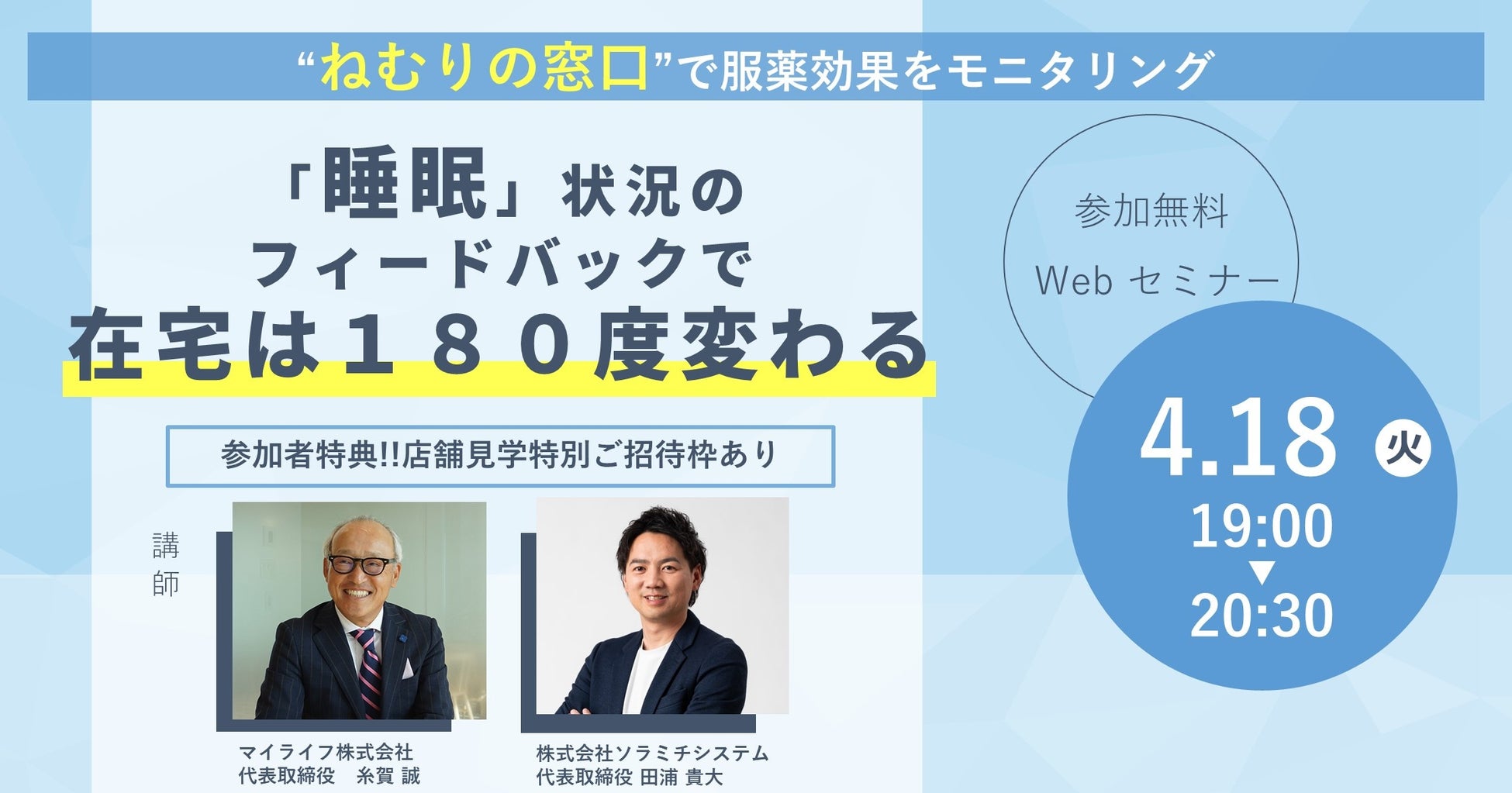 【ソラミチシステム:無料オンラインセミナー4月18日開催】「睡眠」状況のフィードバックで在宅は180度変わる