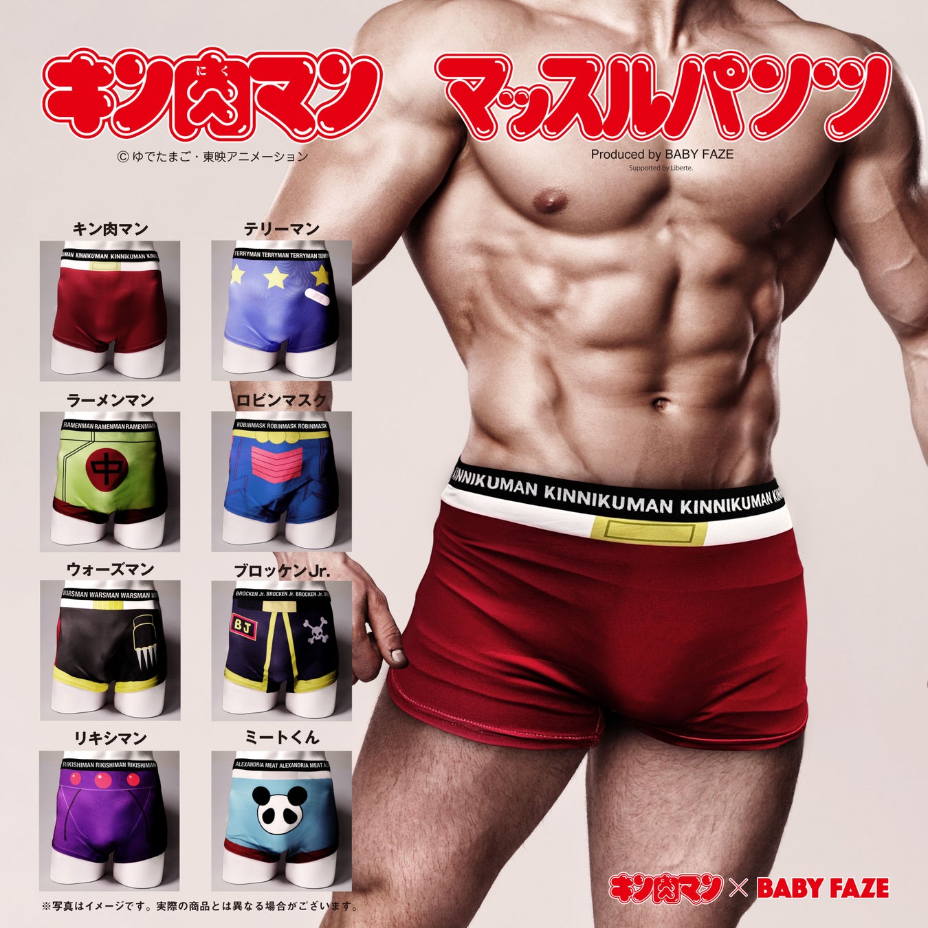 クリエイティブデザインオフィスBABY FAZEから、キン肉マンのボクサーパンツブランド「マッスルパンツ」の新シリーズが発売される。ラインナップはキン肉マン、テリーマン、ラーメンマン、ロビンマスク、ウォーズマン、ブロッケンJr.、リキシマン、ミートくんの合計8種類。サイズはM、Lの2種類あり。いざという時の勝負パンツとして!?憧れの超人達になりきろう!