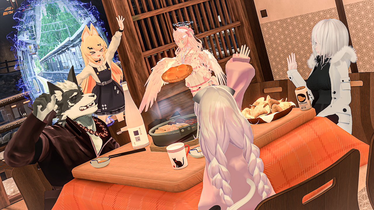 この度は大変名誉ある賞をいただけましたこと、とても嬉しく思います! 「つながり」というテーマを受けて、人との繋がりを感じられる一枚にしたい!と思い、構図を考えていきました。 その中でもう1つテーマに沿うものを加えられないか考えていたところ、違うワールドと繋げて移動できるVRChatの機能であるポータルがテーマにぴったりだと感じ、写真に組み込むことにしました! 色々と試していく中でポータルは本来の使い方とは逆になってしまいましたが、自分が描いていた「人の繋がり」と「世界の繋がり」を表現できたのではないかと思います。 急なお願いにも関わらず、フレンドの皆様が快く協力してくださり、素敵な写真を撮ることができました!本当にありがとうございました!