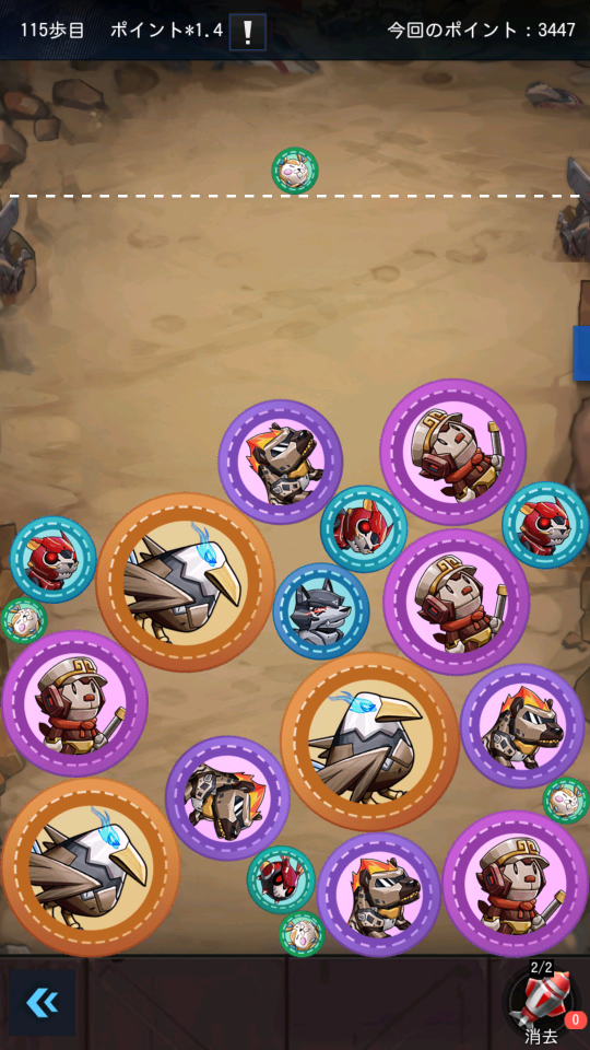 また、重ねたモンスターが上のラインを超えるとゲームオーバーになってしまうので、ラインを超えないように、できるだけ多くのポイントを稼ぎましょう。