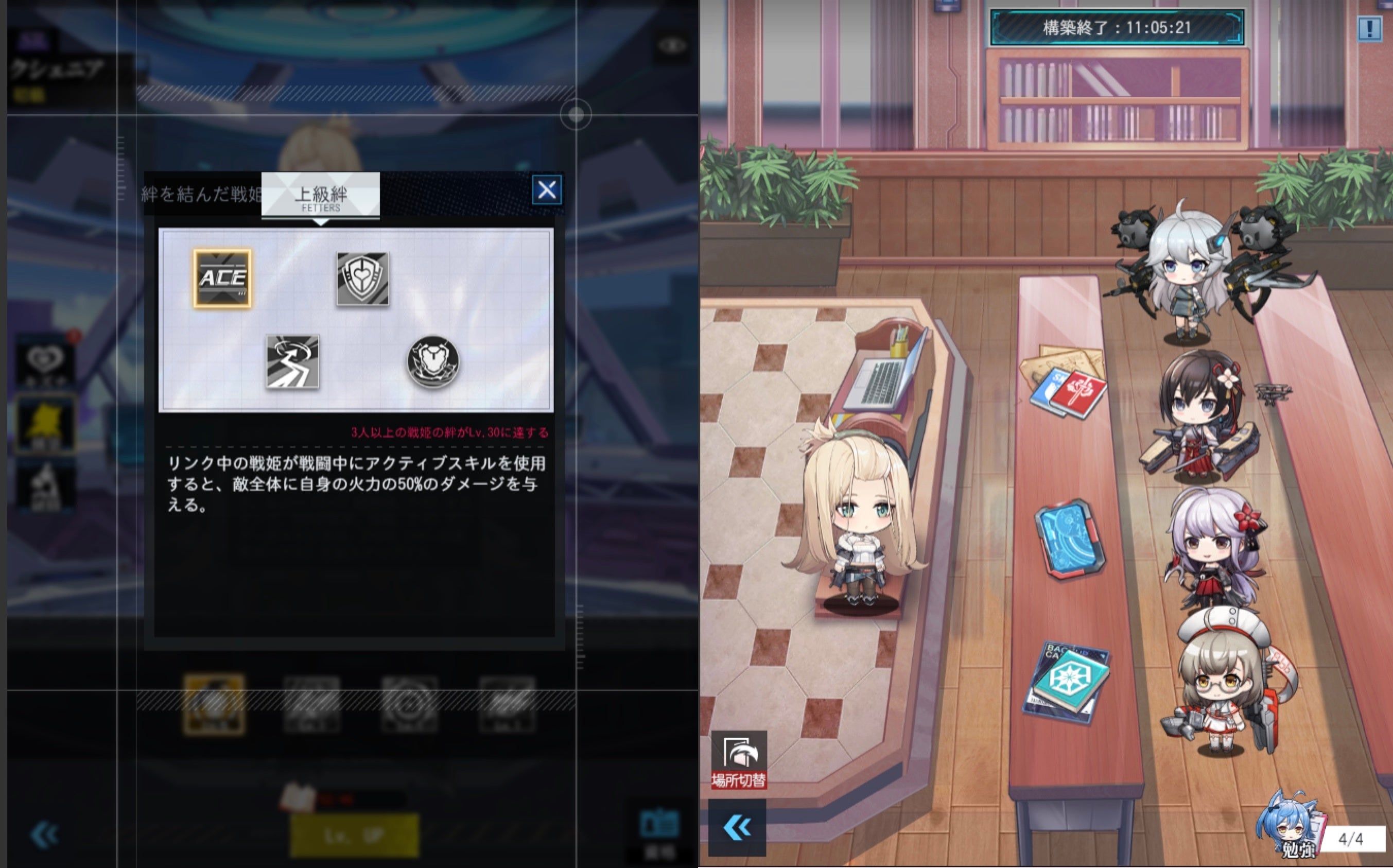 また、学院では構築士を教師として着任させ、キズナ戦姫を最大4人教室に入れて、勉強(構築)させることができます。