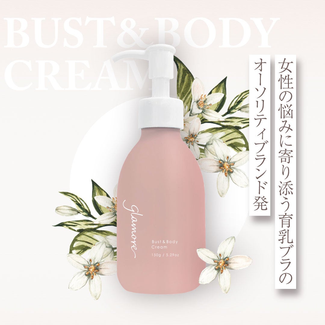 育乳ブラ専門店ならではの知見を活かして開発された「バスト&ボディクリーム」は、産前産後のママ特有の悩みにしっかり寄り添いたいという想いから生まれたグラモア初のコスメラインです。魅力的なバストを維持するための成分を配合し、乾燥しやすい産前産後の敏感なお肌にも使えるよう保湿成分や無添加設計にもこだわりました。