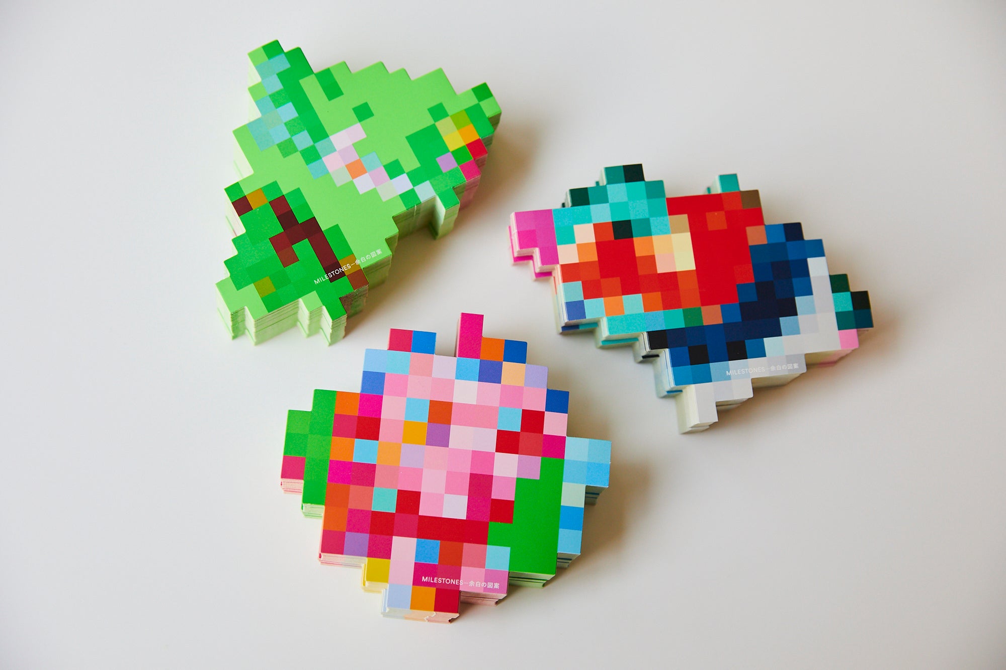 「MILESTONESー余白の図案」にご来場いただいた方に、オリジナルステッカー4種の中からどれか1点をプレゼントしています。(色柄は選べません。)
