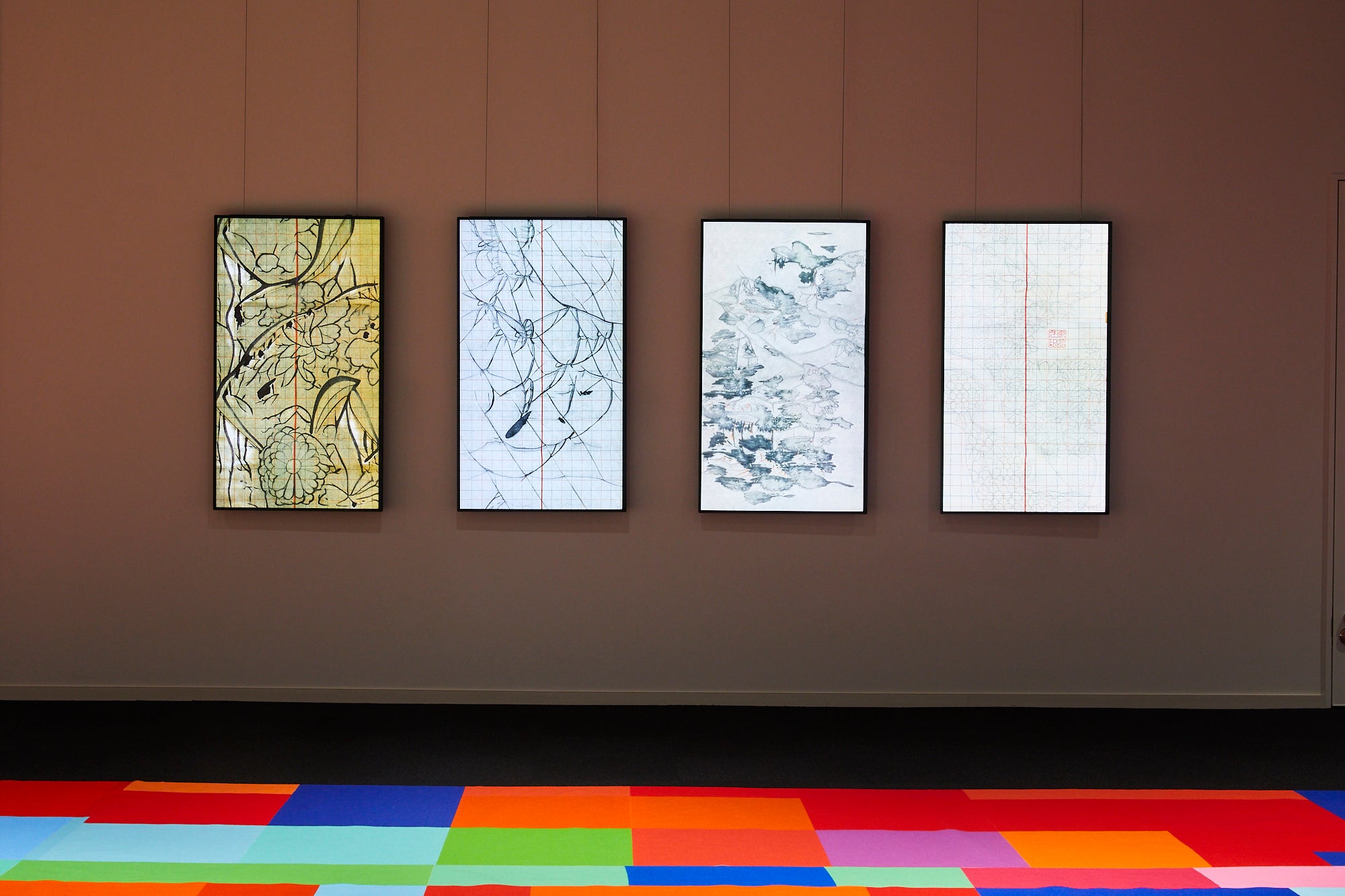 本展では、この膨大なデータを活用し、堂園 翔矢氏(コンピュテーショナル・デザイナー/プログラマー)が機械学習によって生成した新たな図案と、「カラーとコンセプト」を特徴とするクリエイティブ・ユニットSPREAD(https://spread-web.jp)が、独自の解釈で着彩した過去の図案をインスタレーションとして公開しています。