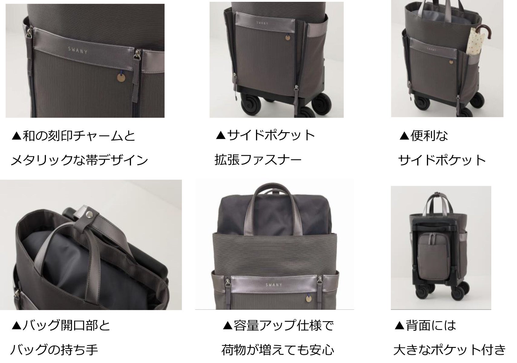SWANYは、1937年創業の老舗メーカーです。歩行に不安のある方でも安心して外出できるよう、機能的で使いやすいキャリーバッグを開発・販売しています。