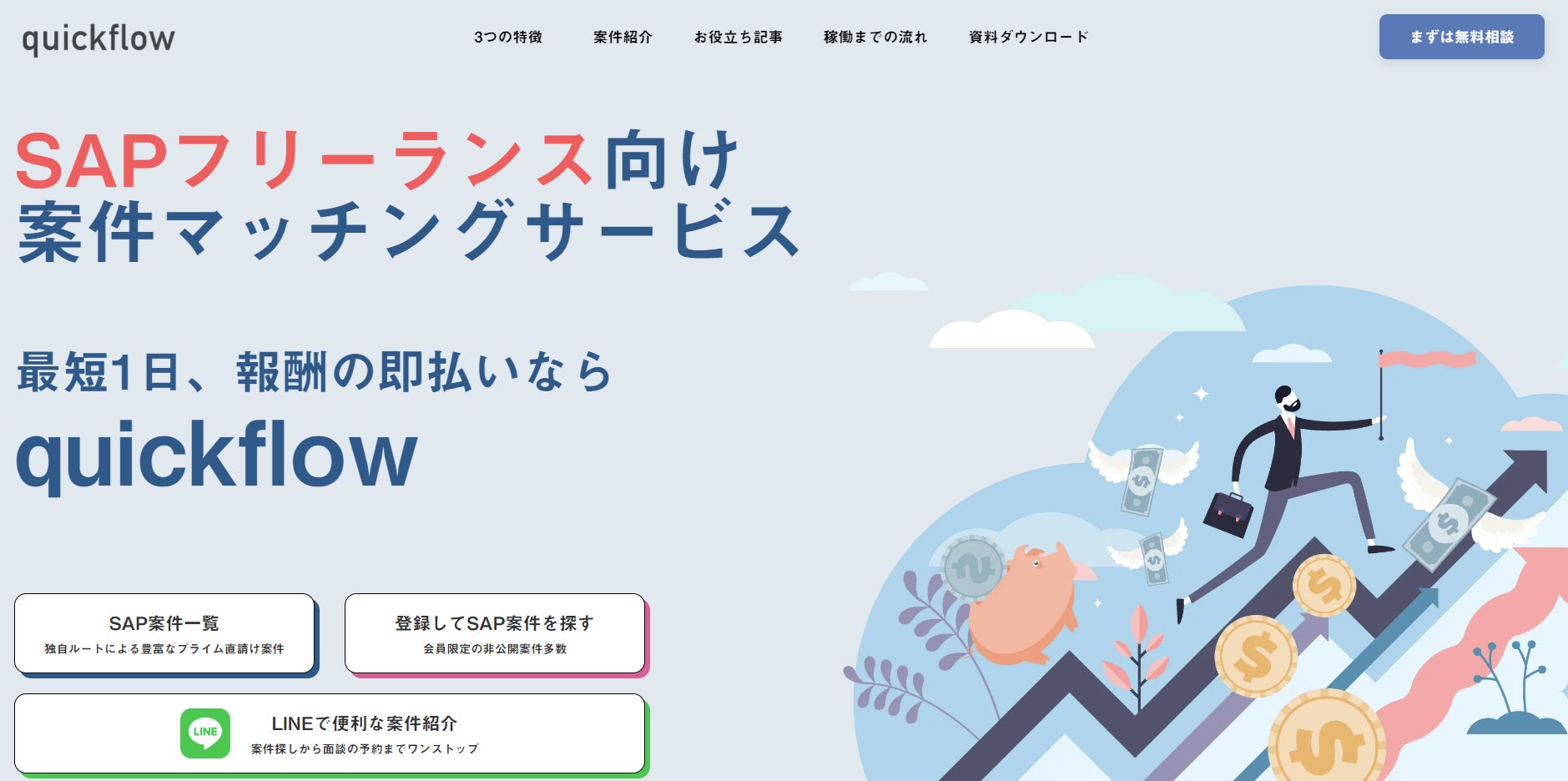 quickflowはコンサルファーム出身者によって立ち上げられた、高単価・良条件の案件を豊富に扱うフリーコンサルタント向けの案件マッチングプラットフォームです。