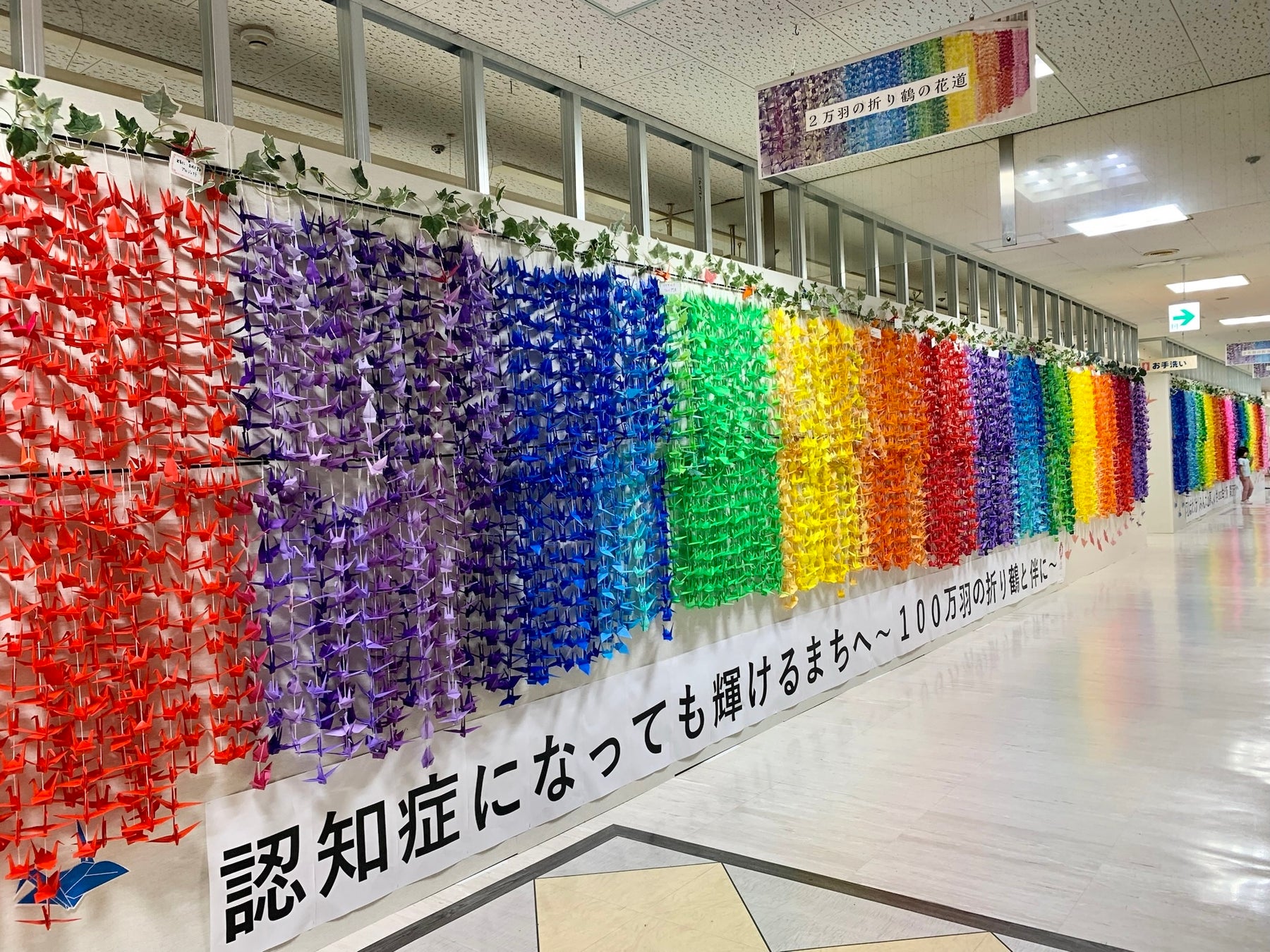 その一環として実施している本企画では、イズミヤショッピングセンター門真の協力を得て、同館内に常設の折り鶴を折るスペースや折り鶴の展示場所を設け、孤立しがちな認知症の方や高齢者が、身近な商業施設で折り鶴を折る機会を通じて、つながりや希望を実感し、万博のテーマである「いのち輝く未来社会」につながる先進的な実践となっています。