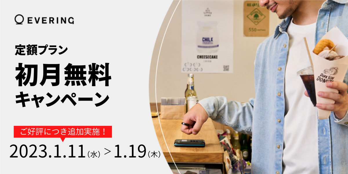 - いまなら初期費用0円でEVERINGの“1秒決済”を体験可能!「定額プラン初月無料キャンペーン」