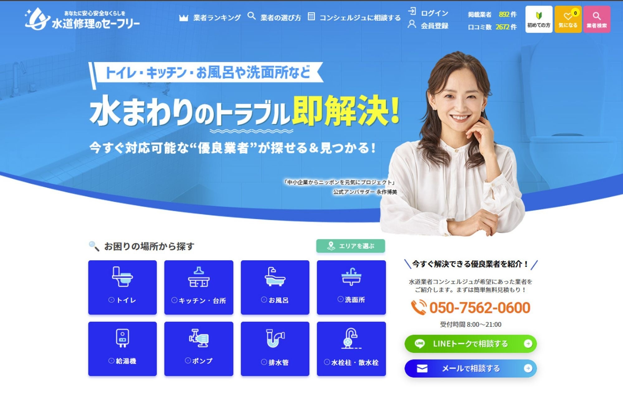 水道修理事業者の比較メディア「水道修理のセーフリー」、「中小企業からニッポンを元気にプロジェクト」に参画、プロジェクトの公式アンバサダー永作博美さんの肖像を活用したサイトリニューアルを実施!