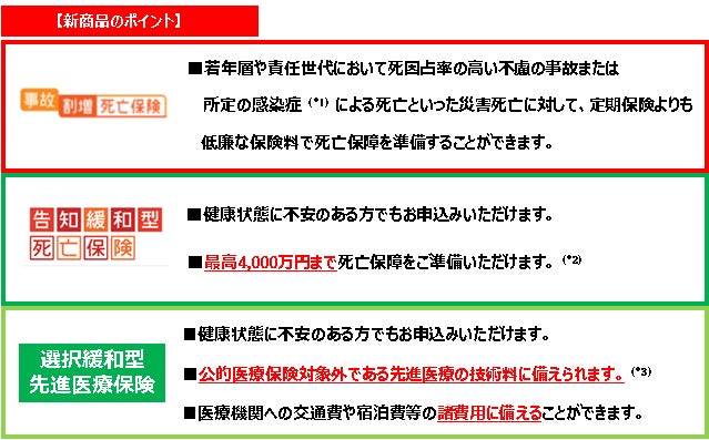 T&D保険グループの太陽生命保険株式会社(社長 副島直樹)は、2022年5月30日より、「事故割増死亡保険」(正式名称:無配当災害保障付死亡保険(無解約払戻金型)(001))「告知緩和型死亡保険」(正式名称:無配当選択緩和型定期保険(001))、「選択緩和型先進医療保険」(正式名称:無配当選択緩和型先進医療保険(無解約払戻金型)(001))を新たに発売しました。