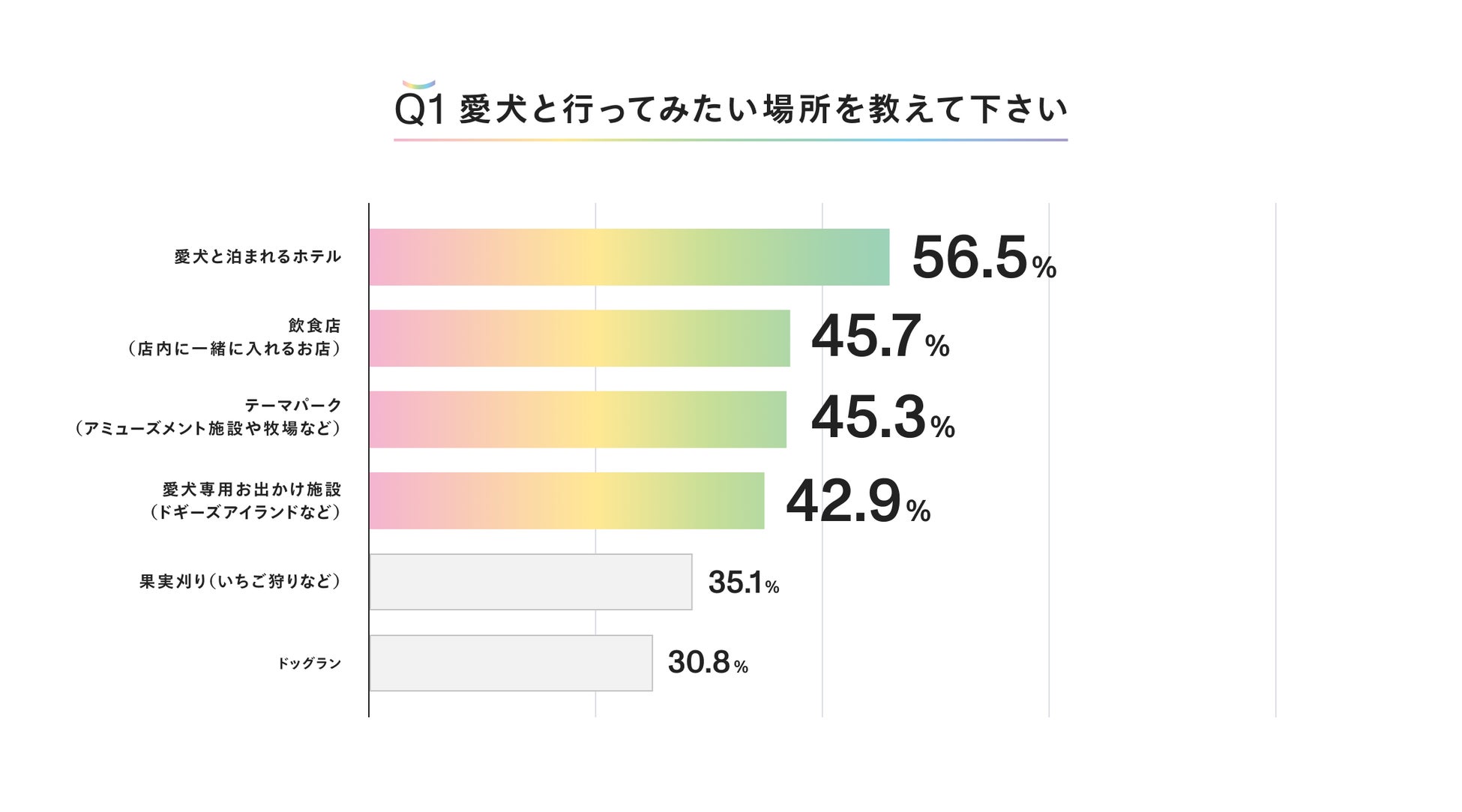 愛犬と一緒に行ってみたいのは「愛犬と泊まれるホテル」が56.5%