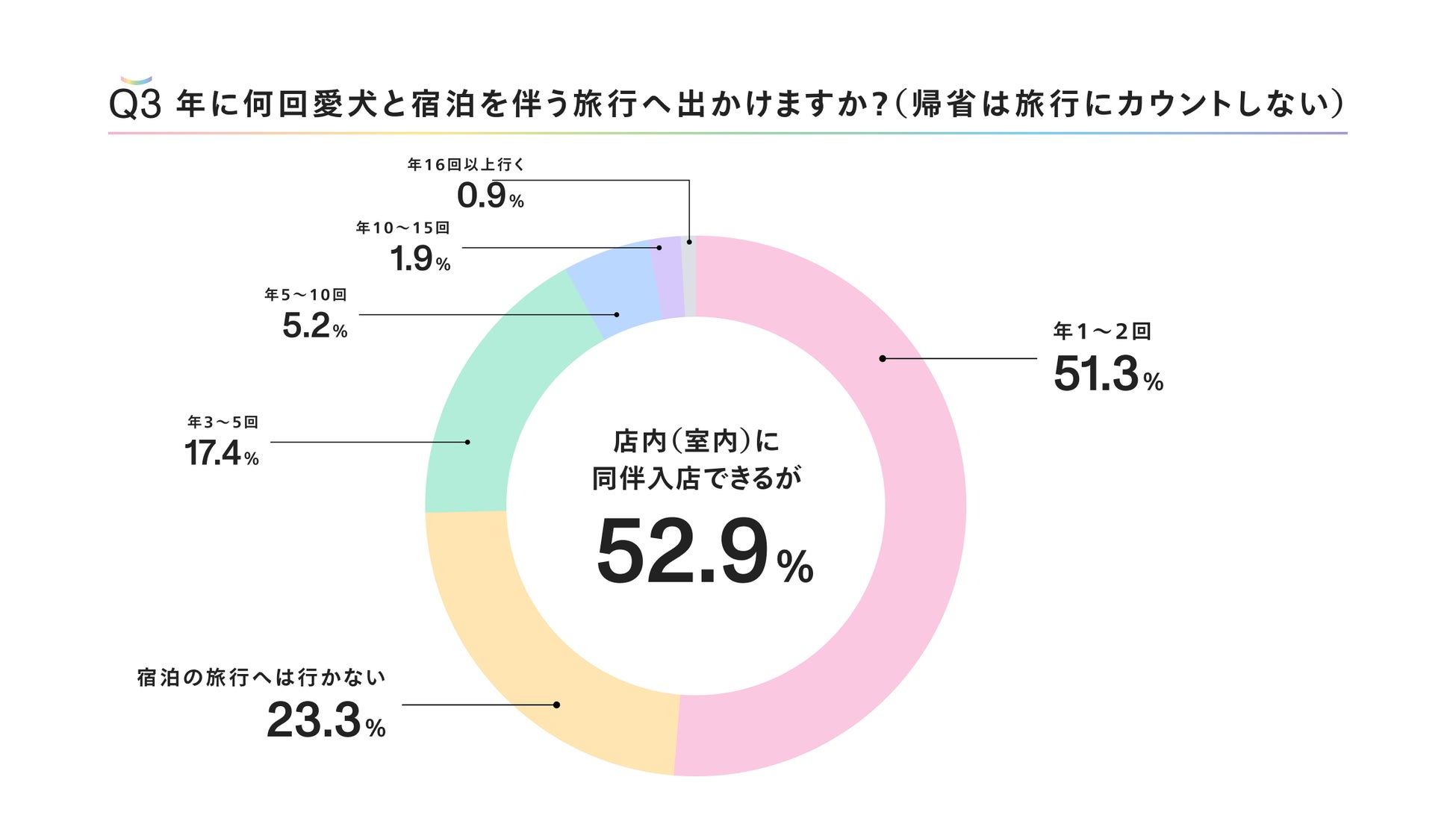 愛犬と宿泊を伴う旅は51.3%が年間1〜2回、23.3%が「宿泊の旅行へは行かない」