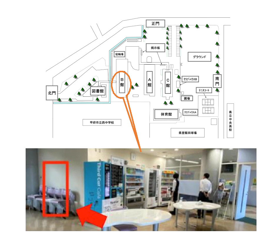 (2)実施場所 公立大学法人山梨県立大学 飯田キャンパスB館1階カフェテリア